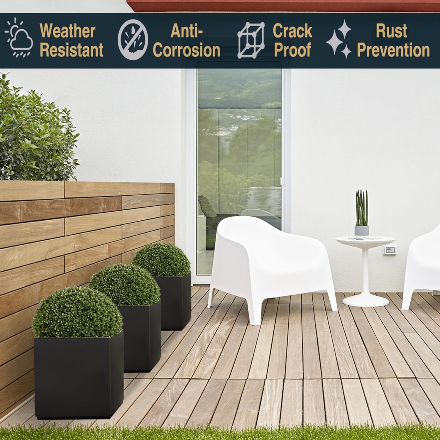 - MODERN DECOR: This gorgeous large cube planter box is suitable for planting tall trees and large green plants with its strong and sturdy construction. It is the perfect decoration for your back deck, patio or entrance with its pure black color and modern appeal.