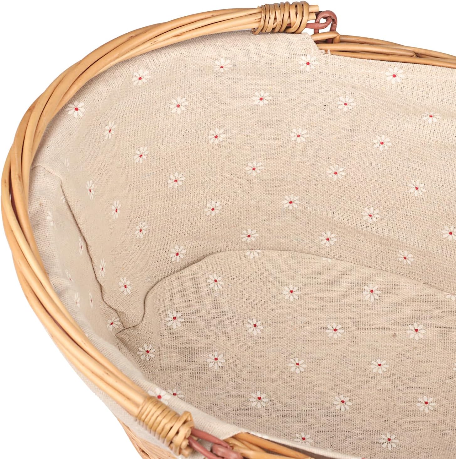 2 Pack Medium Size Oval Willow Basket with Handle, 12.6x9x4.7 Inch Wicker Picnic Basket with Liner, Empty Gift Basket, Wicker Basket for Fruit, Candy, Wine, Gathering, Wedding, Picnic, by GNIEMCKIN