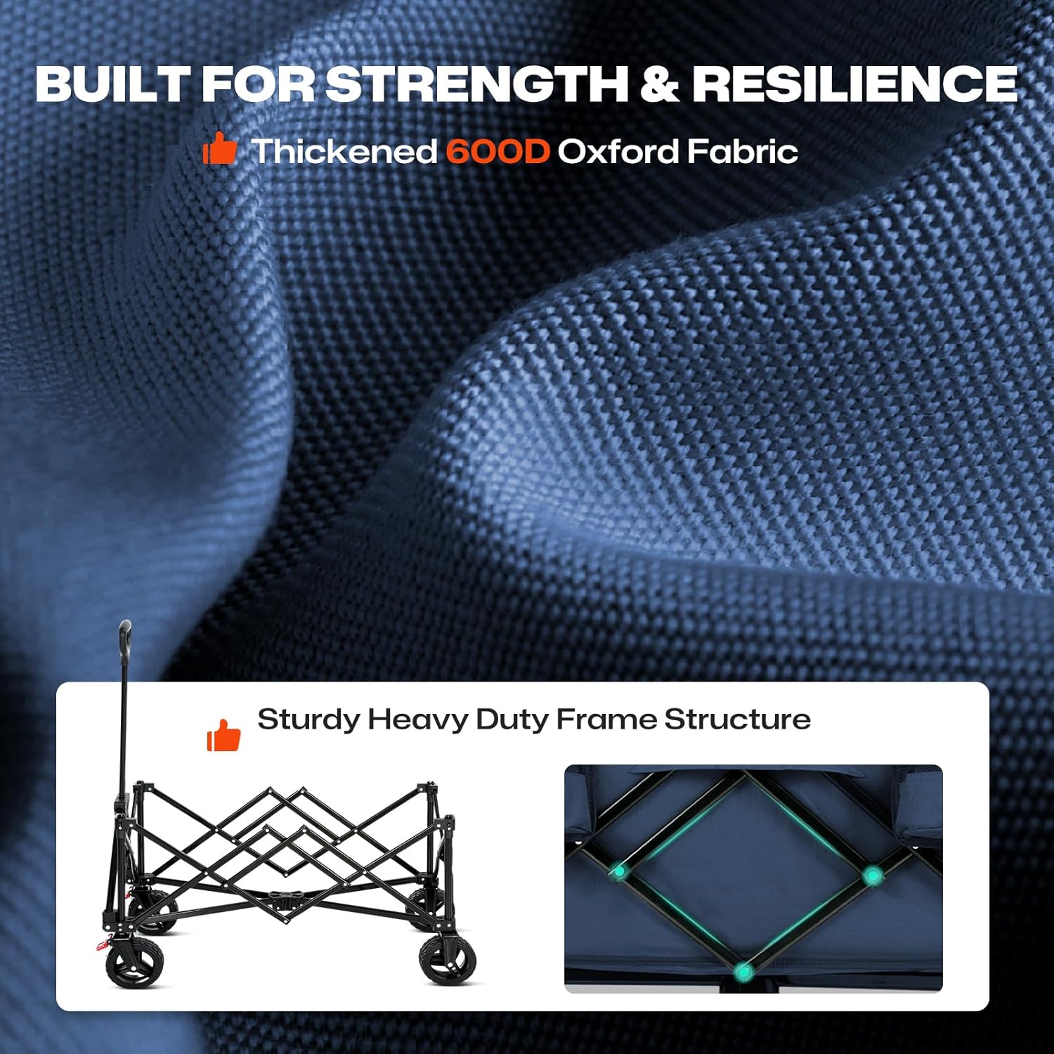 - [Never Miss a Moment]: Ideal for camping, beach outings and grocery shopping, this heavy-duty foldable wagon handles all your transport needs. Say goodbye to lifting and carrying—just load it up and enjoy every adventure with ease.