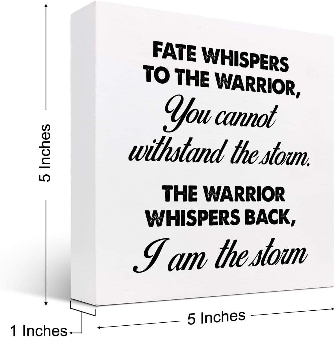 Motivational Wood Box Sign,Fate Whispers to The Warrior Inspirational Wooden Block Sign for Home Bedroom Farmhouse Wall Shelf Table Decor