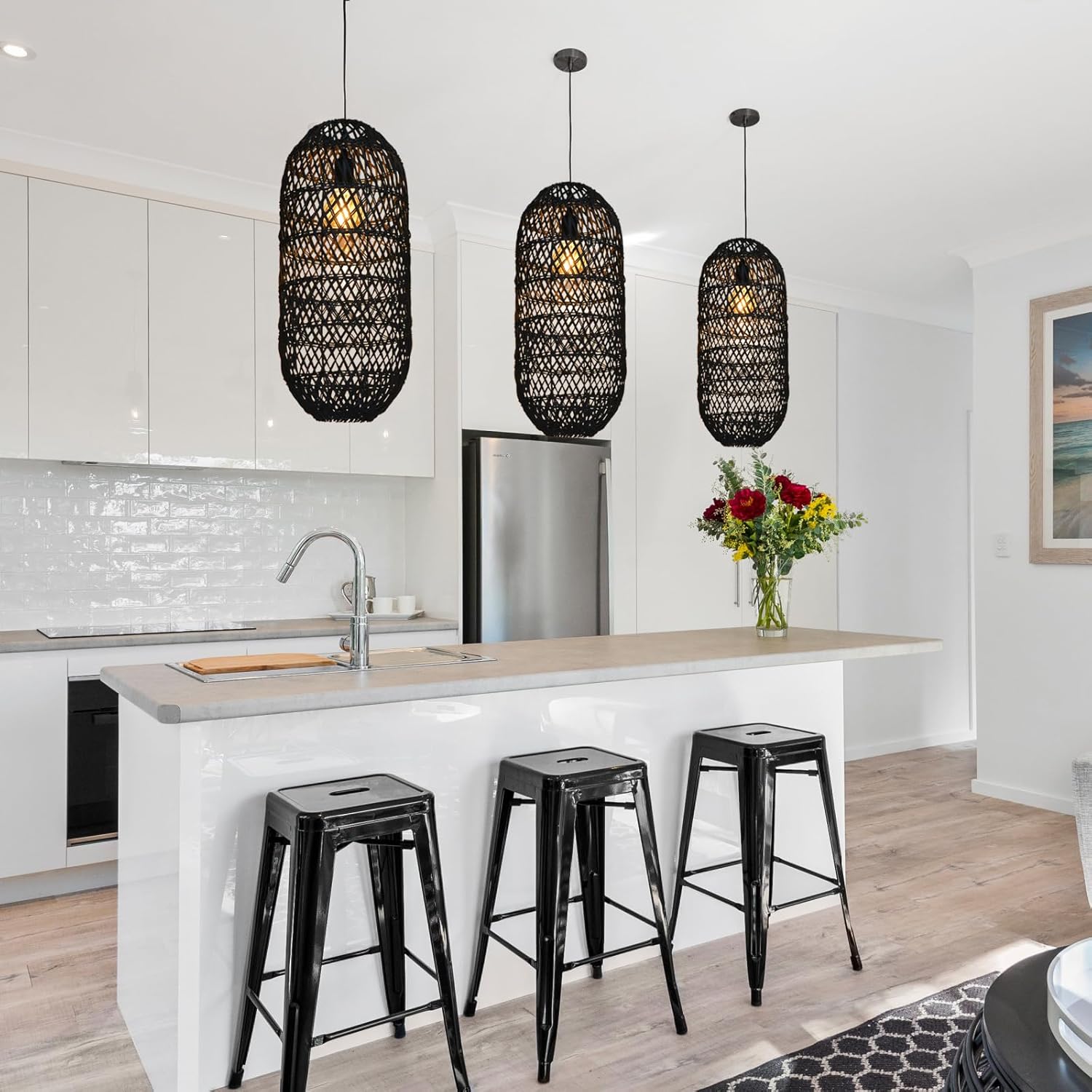 - Widely Application:Farmhouse woven hanging lights perfect for dining room,living room,bedroom,kitchen islands,nursery,cafe,foyer, entrance,small dining table,bar area,reading nook,sitting area,loft,beach villa,farmhouse, warehouse,club,beach plant area,etc.