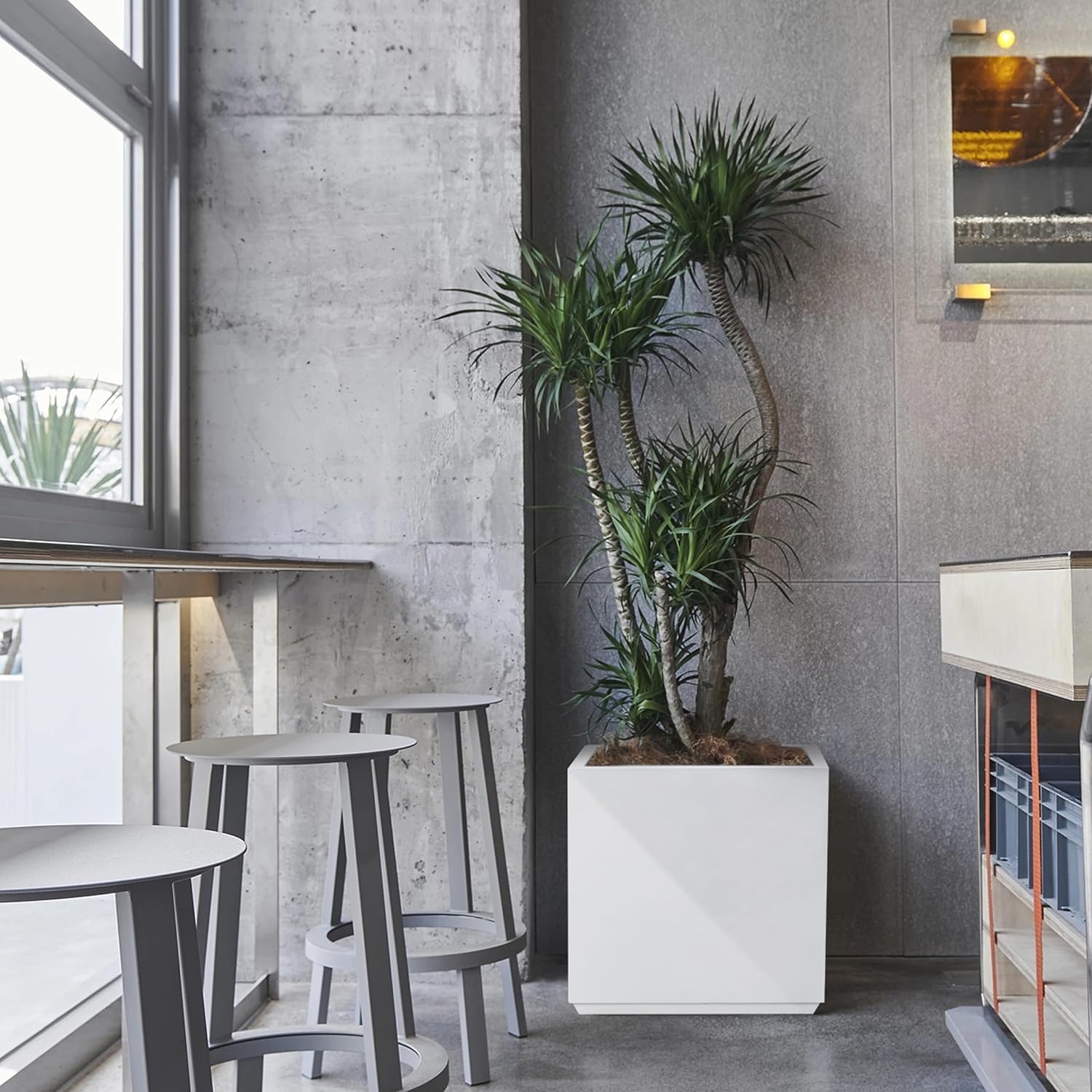 Metallic Heavy Planter Box for Outdoor or Indoor, No Assemble and Seamless, Large Square Planter, Cube Planter for Tall Trees, Plants, Flowers 21Lx21Wx24H 35Pounds White