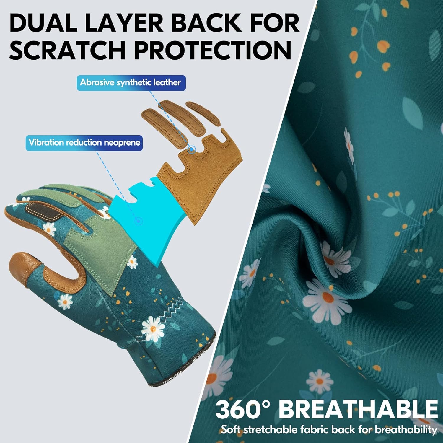 - SCRATCH PROTECTION- pig split leather patches on the back and palm protects hands from thorny and prickly gardening work in the yard, enhance the wear resistance.