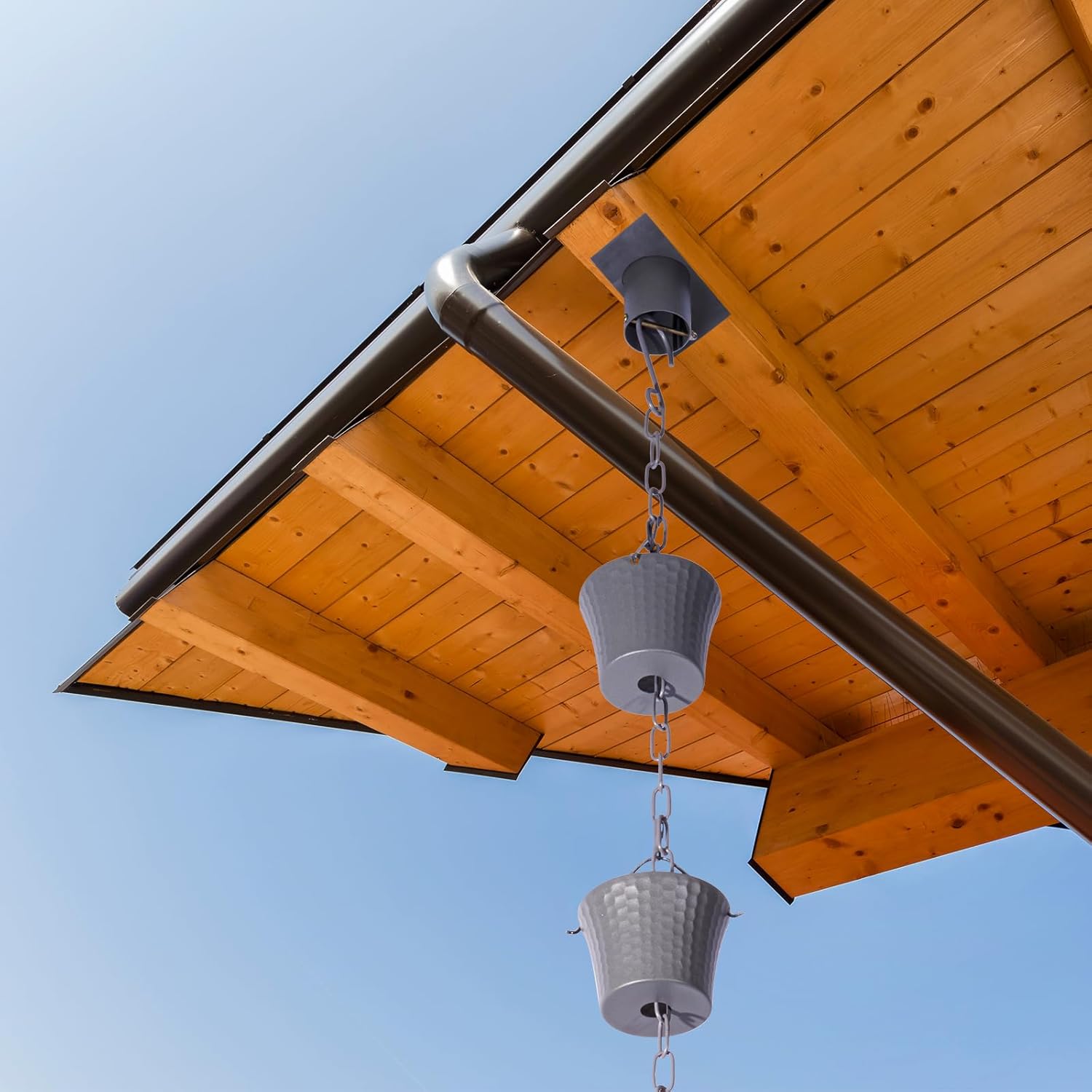 - Classic Looking Design:The standard length of the gutter rain chains is 8.5 FT. The rain chain is made of (larger size of 14 οΌ3.95 inch wide, 3 inch high cylindrical cups and chains) combined with each other, so beautiful that water flows down each cup on the rain chains, creating a beautiful water feature.