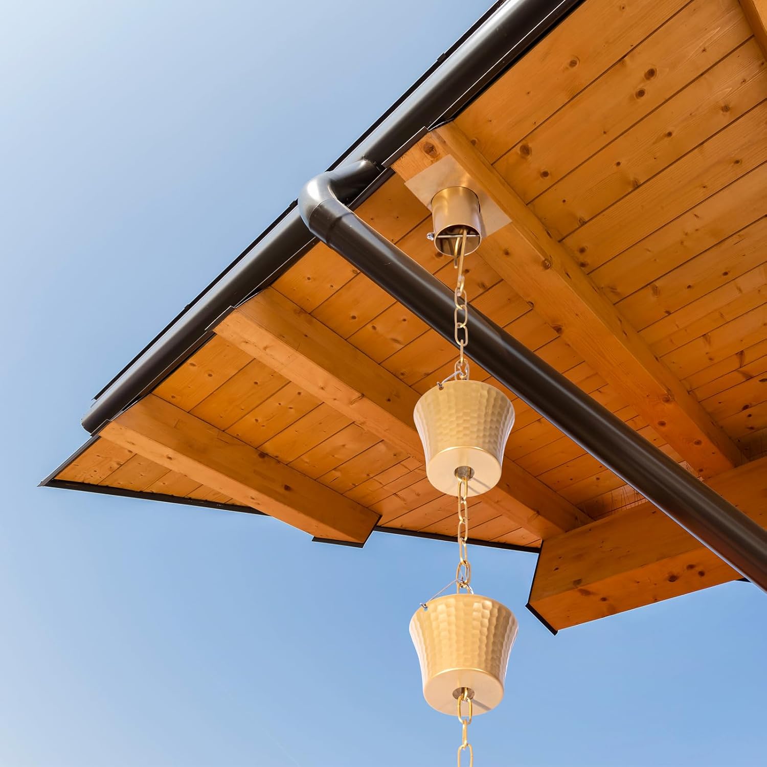 - Rain Chain Creative :A decorative item for gazebos, garden sheds and patios, and a great gift for gardening friends.If you don't exactly like copper rain chimes for outside what you've purchased, just return it for an easy refund.
