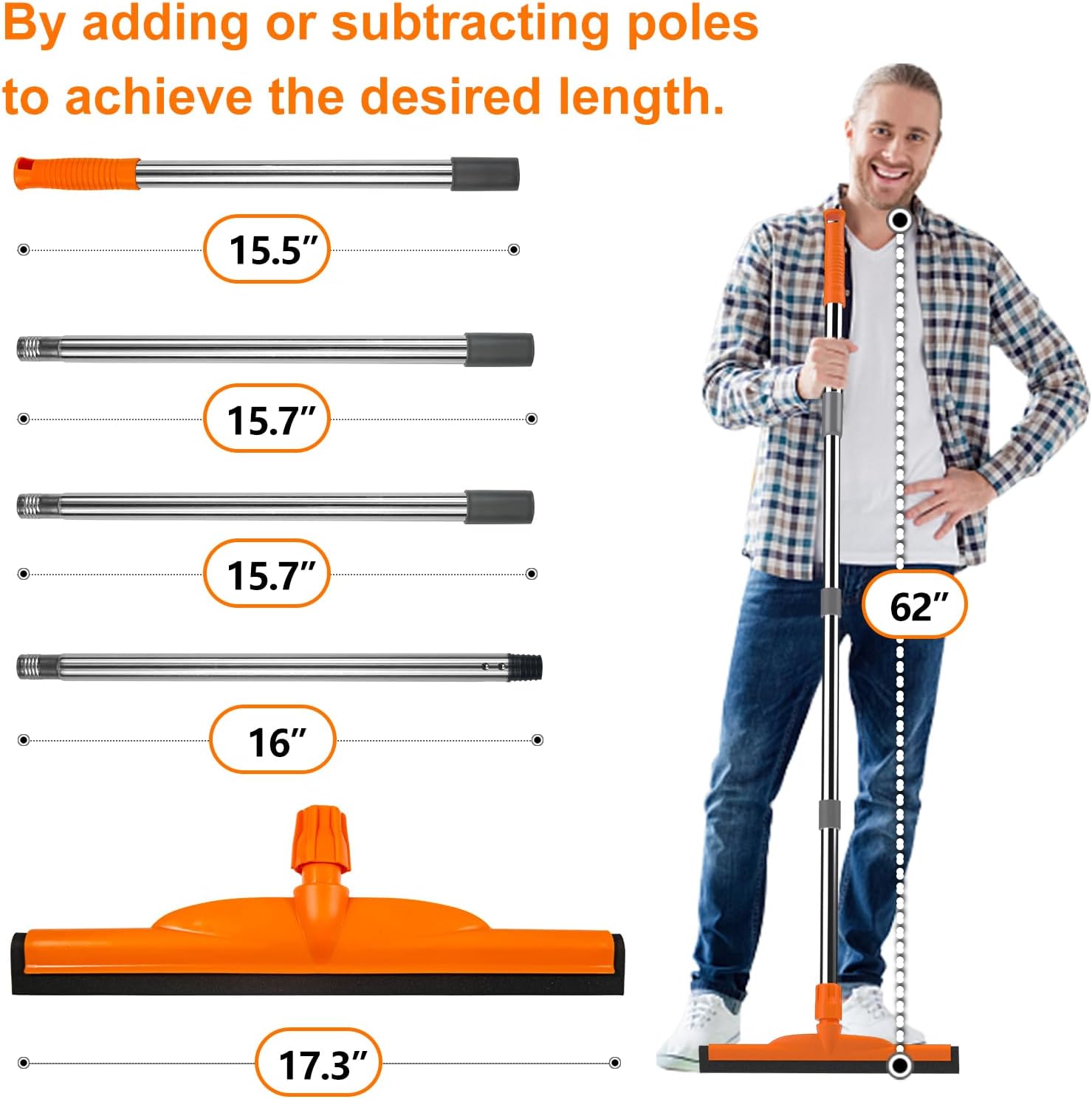 - Greater Possibility: Are you tired of getting the wrong size? ITTAR helps you address your concerns. Our foam squeegee broom comes with an 17.3" EVA foam blade and 4-section strong stainless steel poles. You can choose to add or subtract poles to up your need, it can be extended from 33 to 62 inches