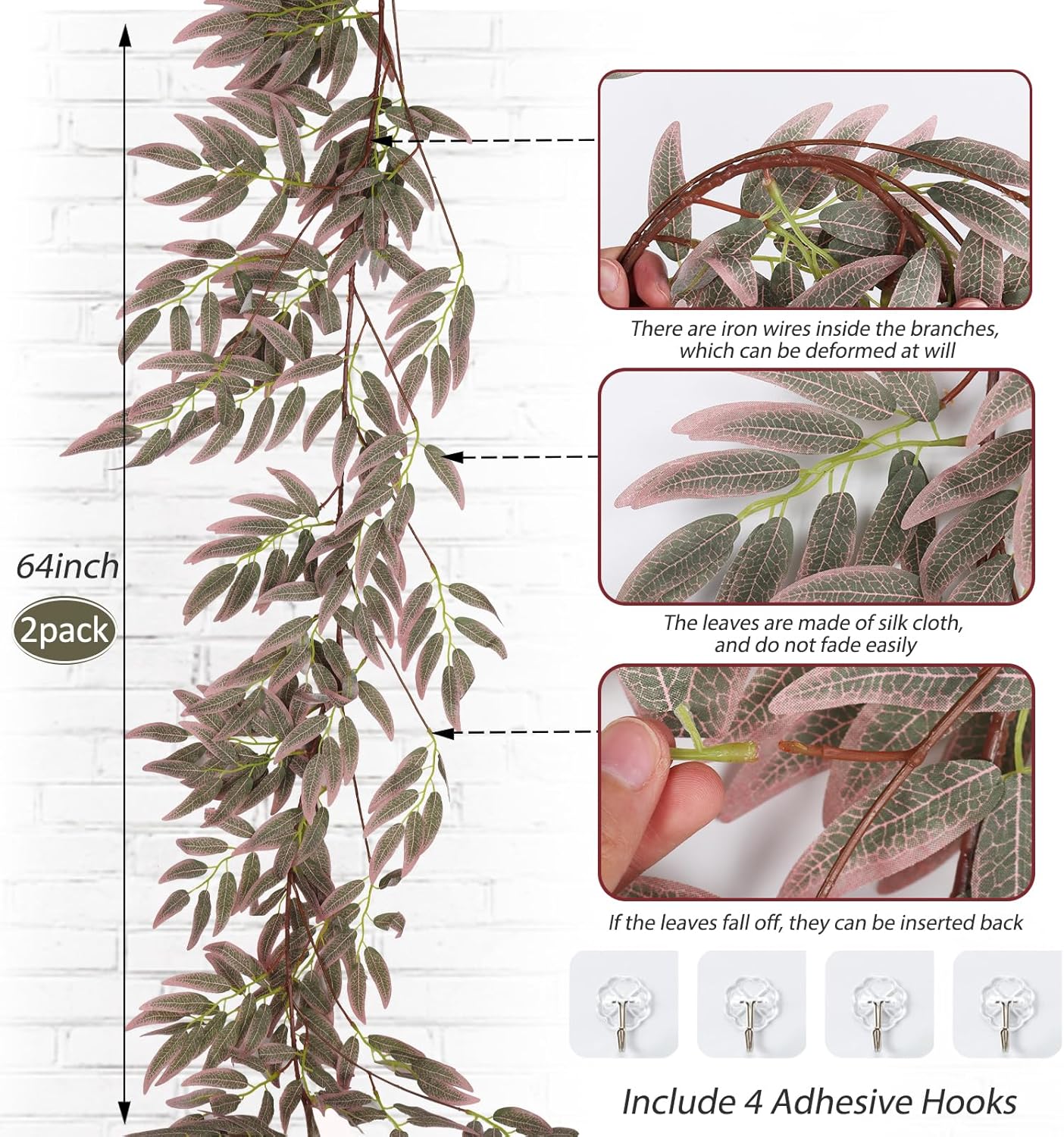 - Excellent Quality Willow Vine:The leaves of artificial hanging vine are made of silk cloth and the stems are made of plastic. The leaves do not fall off easily, do not fade easily, have a light smell, and do not wilt, or get damaged easily