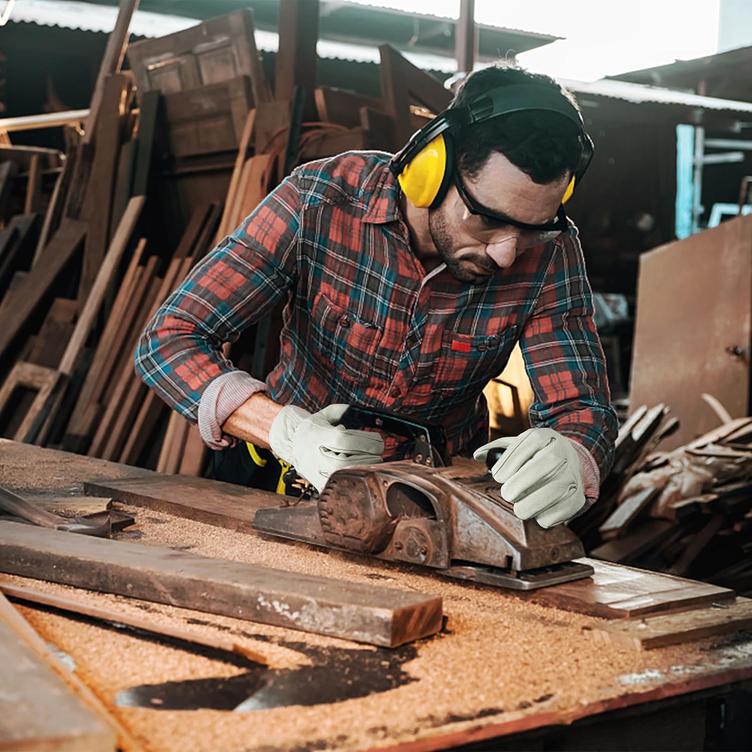 - MULTI FUNCTIONAL: Perfect Fit for Men & Women, these cowhide work gloves ideal for Construction, Yardwork, Driver, Gardening, Farming, Landscaping, DIY projects,Wood cutting, etc..