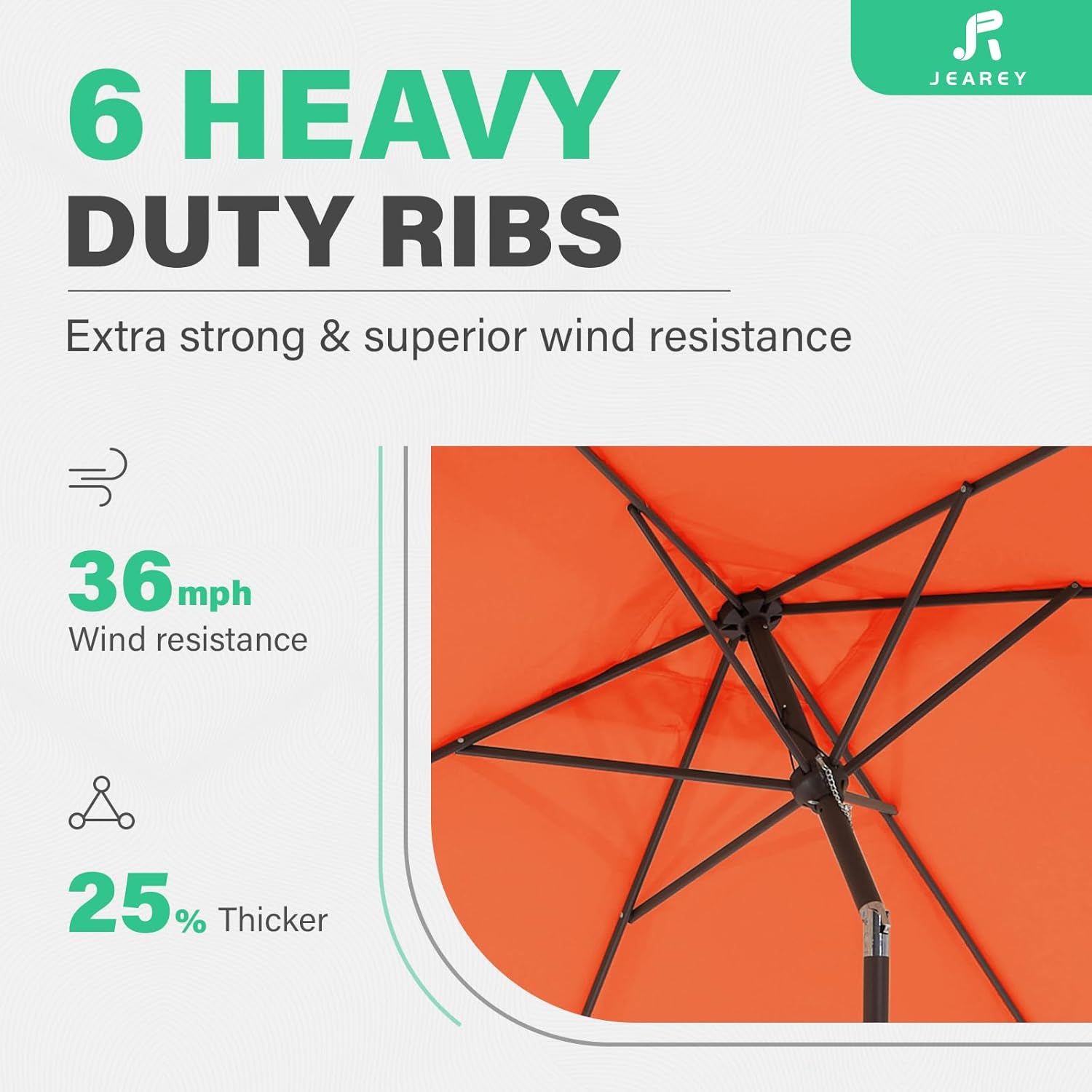 - STURDY FRAME: Powder-coated pole and 6 sturdy ribs give table umbrellas excellent support, and make it perform better in wind and rust resistance. The outdoor patio umbrella features air vented at the top, circulate the air and strengthen stability