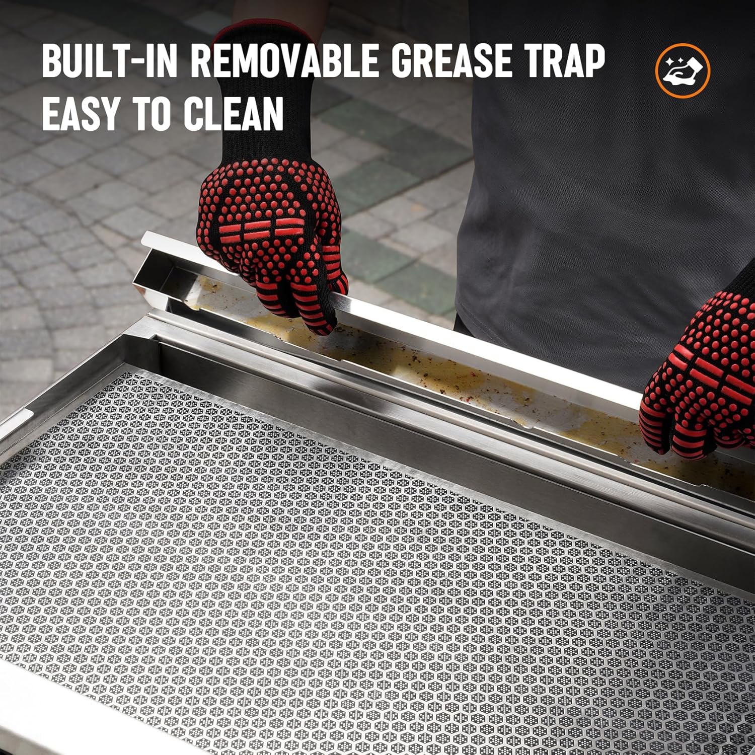 - 【Commercial-Grade Level Material】The built in griddle is made of 304 stainless steel, a high-quality material that is known for its durability and resistance to corrosion and rust; The quality griddle is also a sleek, modern, and stylish addition to your backyard or patio.
