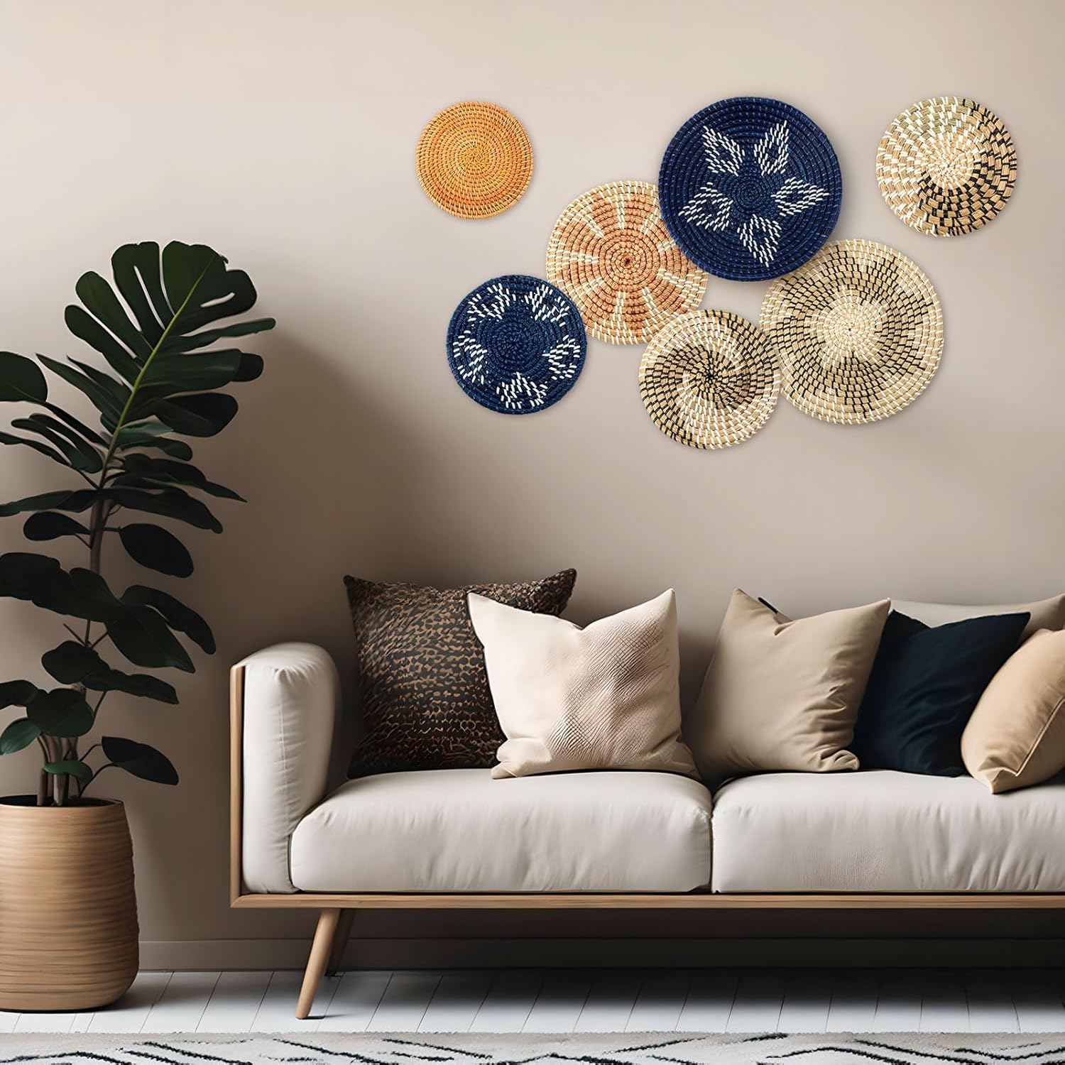 - Delicate Workmanship: woven wall decor is natural and hand woven, made of tan, blue and white plastic cord, neutral colors are easy to match, each seagrass basket is finely handcrafted; When first opened, there will be a natural aroma, which will dissipate in a short time