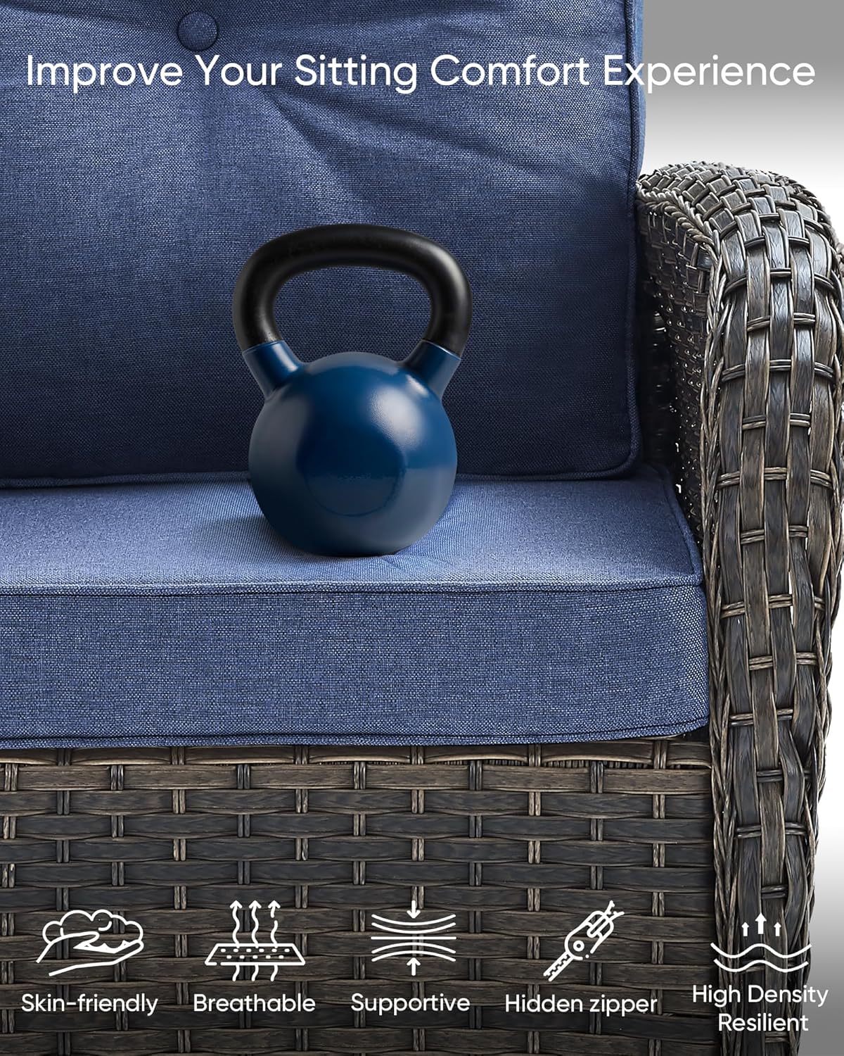 - Durable and Sturdy: Crafted with a powder-coated steel frame, these weather-resistant UV protection pieces are wrapped in hand-woven PE wicker to make this outdoor furniture set durable and sturdy. The steel frame max weight capacity is 250 lbs.