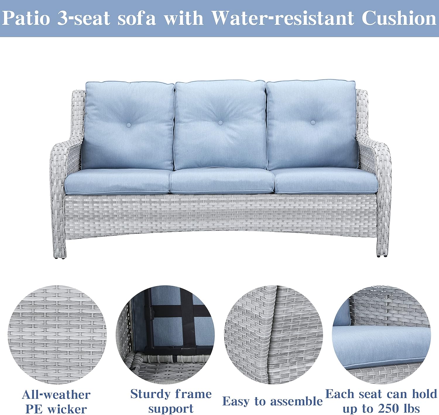 - 【Sturdy Wicker Furniture:】 Outdoor patio furniture sets are made of weather-resistant PE wicker that is extremely durable and resistant to water and fading. It has various ways to suit different spaces and make this wicker set great for your garden, patio, deck, poolside, porch, hallway, balcony and backyard.