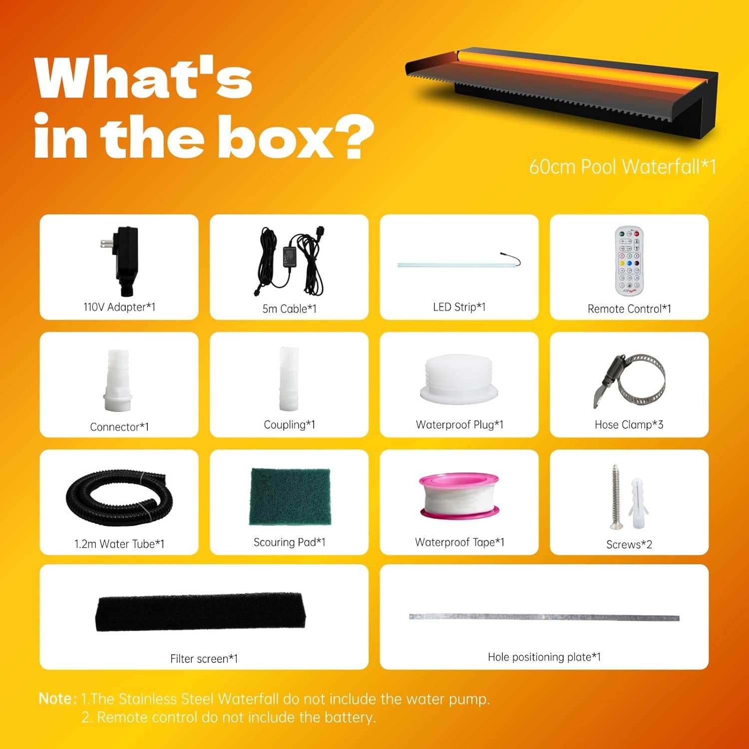 - ⏩Stainless Steel Waterfall⏪ Our pond waterfall is made of finely-polished stainless steel material. It is welded in one body, strong, rust-proof and leak-proof, which will create elegant, invigorating and free falling water effects for your garden patio.