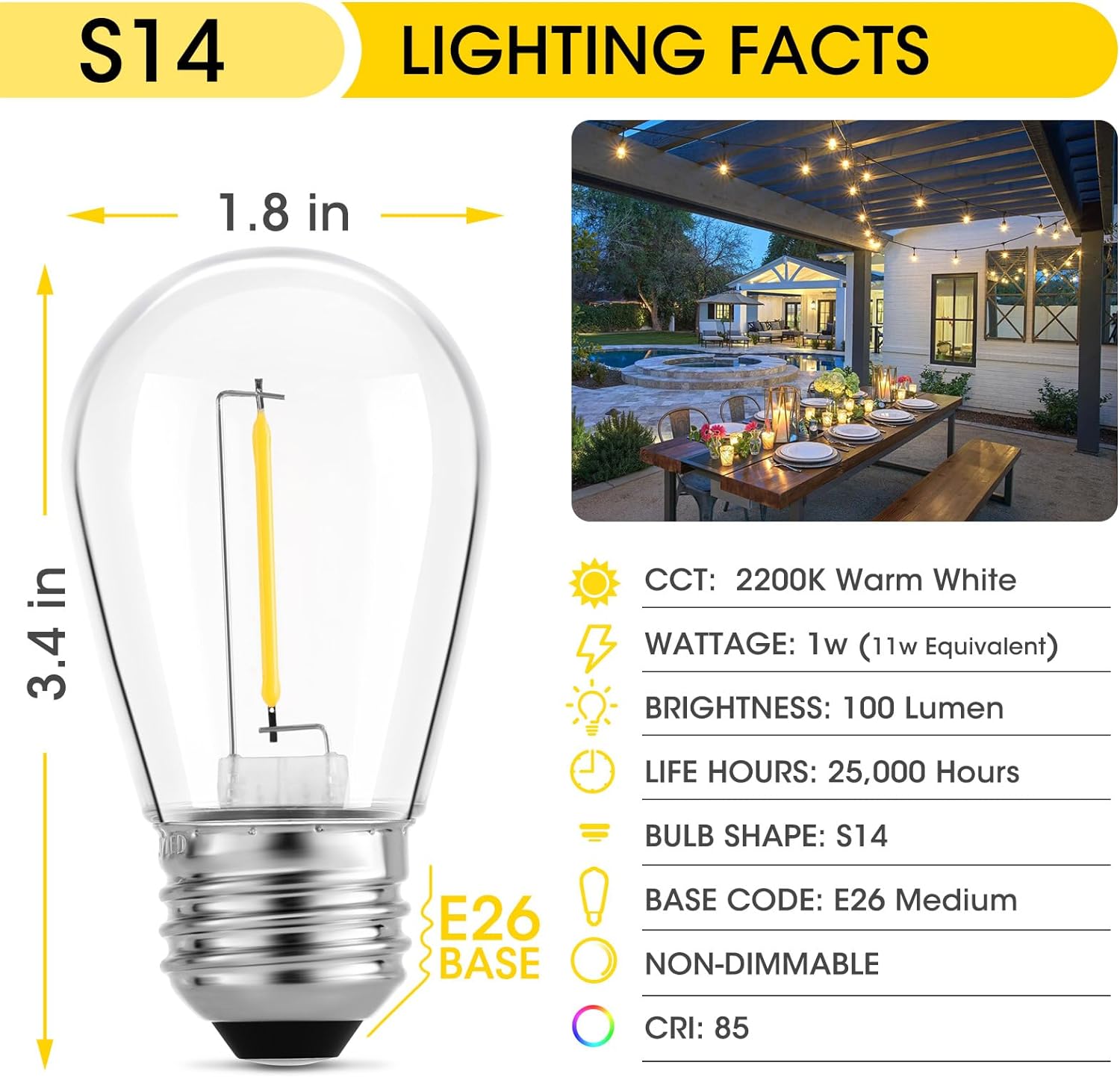 - Special Feature : Equivalent to 11 watt incandescent light bulbs, Outdoor LED string light replacement bulbs