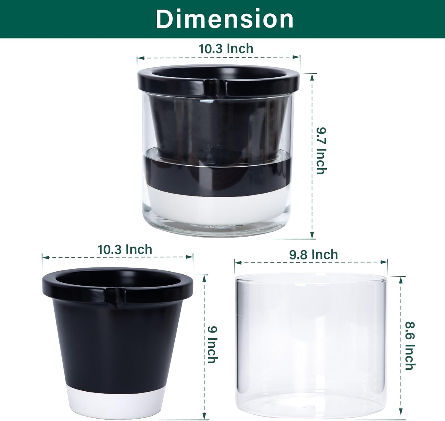 - Size & Dimension β Overall: 10.3" outer diameter and 9.7" height; terracotta pot: 10.3" diameter * 9" height; Handcrafted terracotta pot with slightly size variation.
