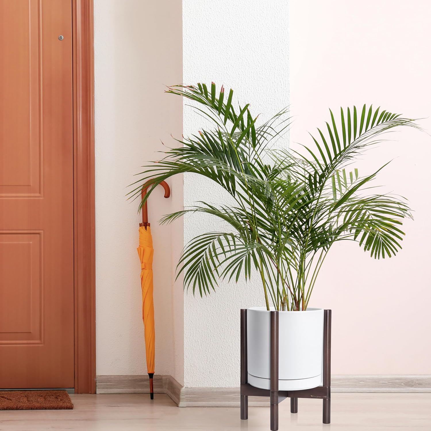- A Complete Set: Mid-century ceramic planter, combined with a sculptural, solid wood stand that match perfectly together and looks great in anywhere.