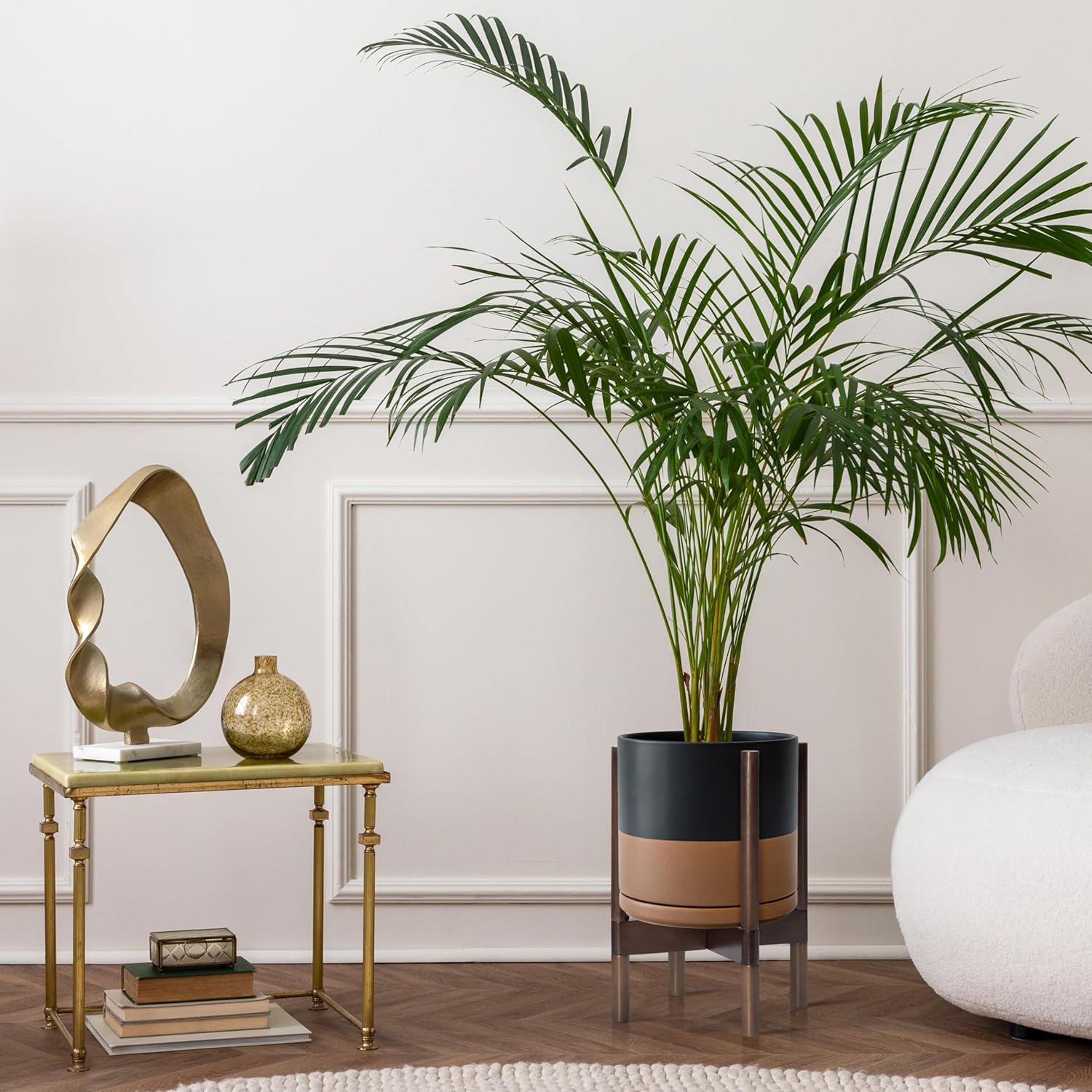 - A Complete Set: Mid-century ceramic planter, combined with a sculptural, solid wood stand that match perfectly together and looks great in anywhere.