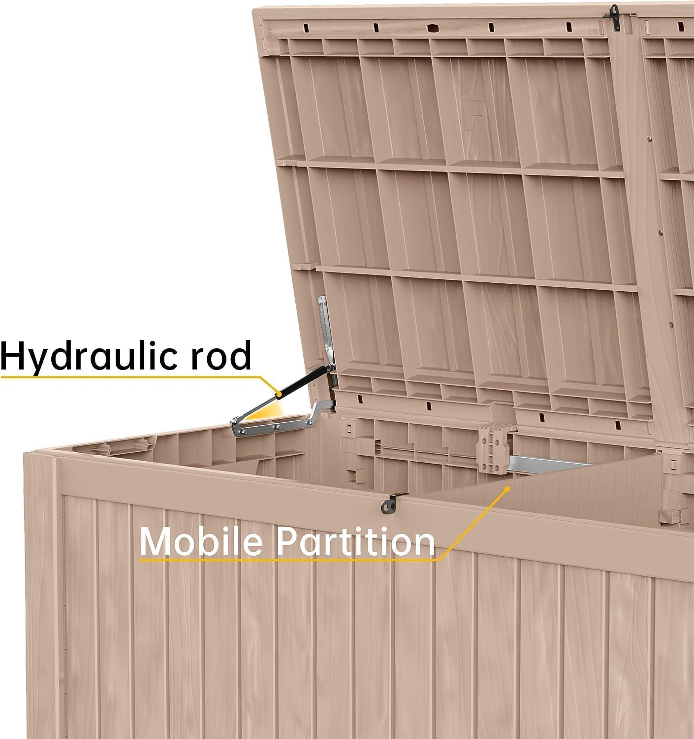 - SAFETY & LOCKABLE DESIGN - Equipped with a hydraulic rod, this storage box ensures smooth and safe lid operation, reducing the risk of accidental pinching. The built-in lockable design adds an extra layer of security, keeping your outdoor valuables safe and protected.