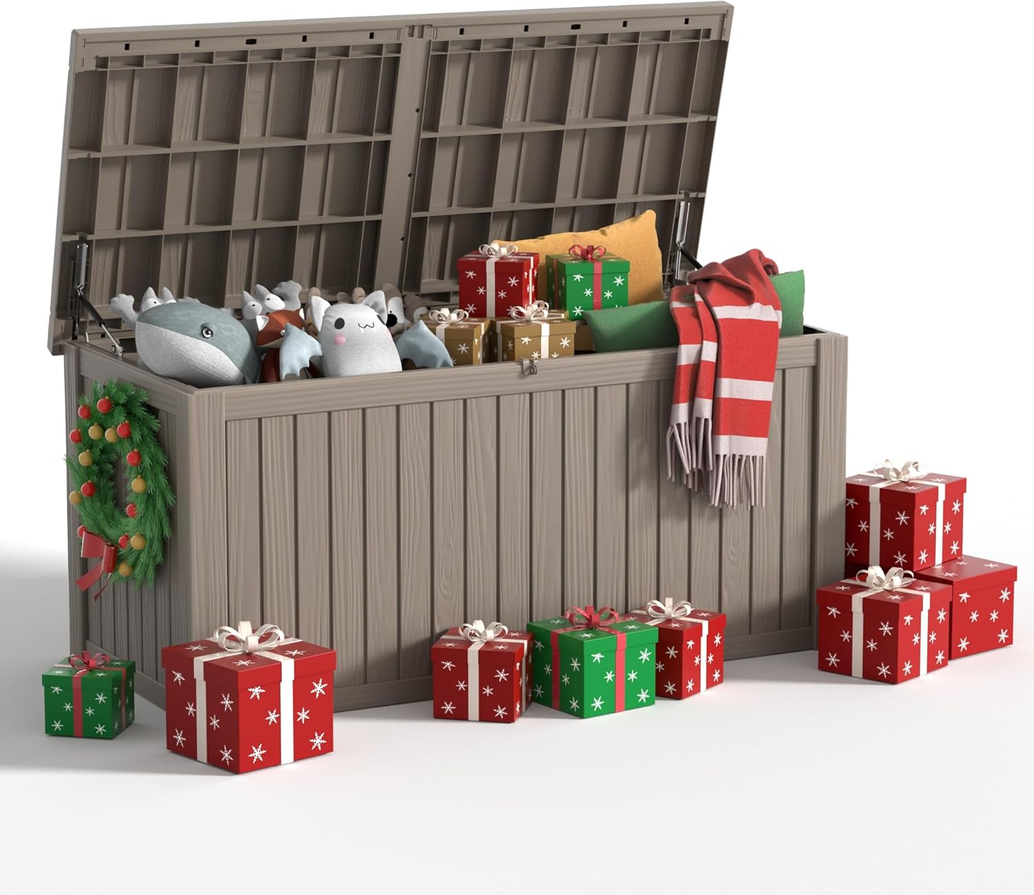 - WATERPROOF AND FADE-RESISTANT - Made from durable, eco-friendly resin, this deck box is both waterproof and UV-resistant, ensuring excellent durability. With UV resistance tested for over 1,000 hours, it provides reliable protection against sun and rain throughout every season.