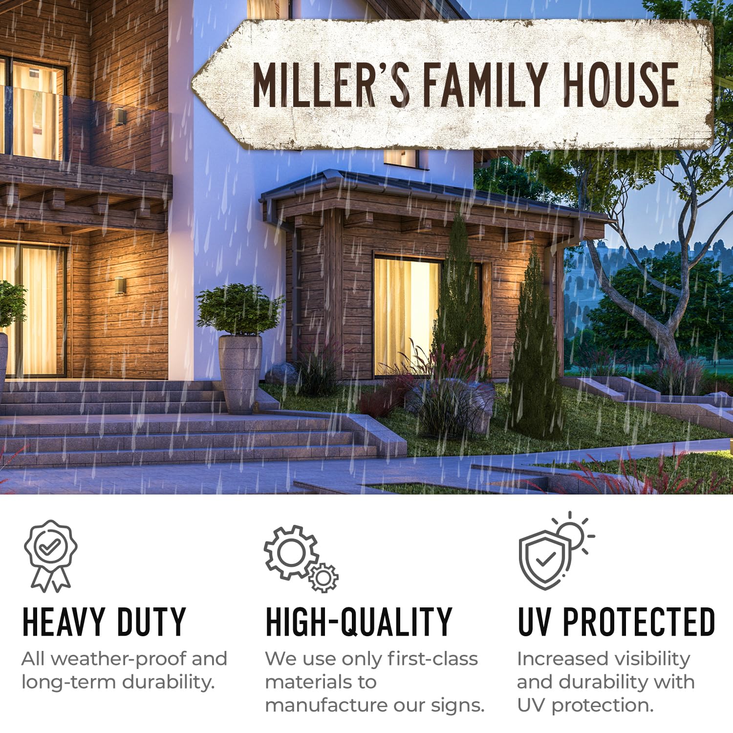 Rustic Custom Sign, Personalized Left Directional Metal Composite Street Sign for Indoor and Outdoor Use 6x24 Inches, ACM Made in the USA