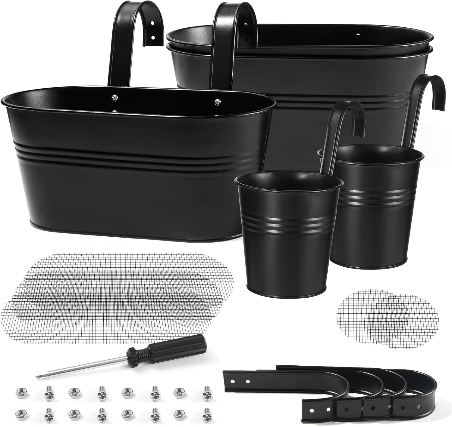 - 【Easy to Use】The large oval pots comes with 2 hooks, In order to increase the bearing capacity of the pot and make it more stable and reliable, the hook is fixed with screws, and we are intimately equipped with a mounting screwdriver. The bucket planter comes with 1 hook, insert the hook into the card slot and the installation is complete.