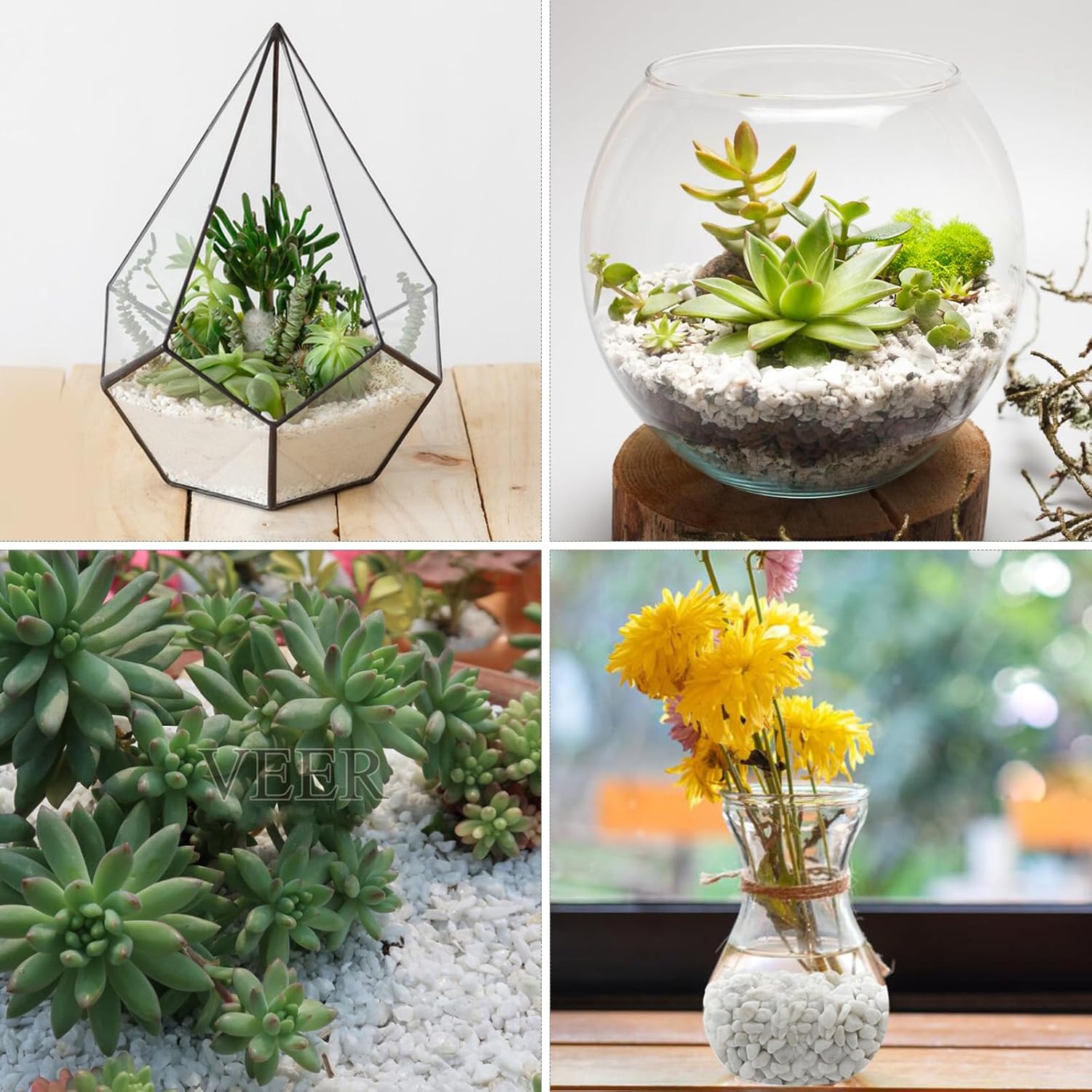- 【Details of Pebbles】:The main image shows two states of pebbles: dry and wet. The color is brighter and the appearance is better in the wet water state,You can get a pack of 10lb white pebbles, size approximately 3/8 inch, each packaged separately. These are natural pebbles that are very suitable for bedding and paving vases, succulent plants, and other items