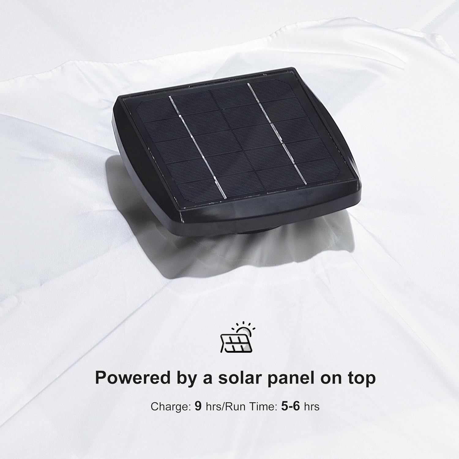- Solar LED Strip Lights: This cantilever umbrella comes with 7 long led lights that is powered by a solar panel on top. (Charge: 9hrs/Run Time: 4hrs)