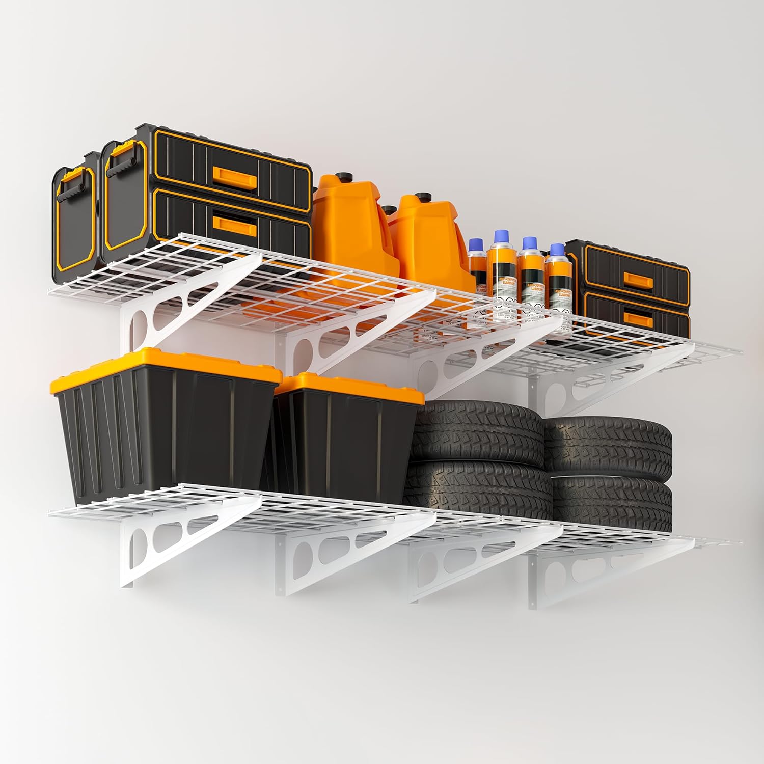 - Multi-functional Garage Wall Shelving: Made of durable, heavy-duty cold-rolled steel, this 2x6 ft garage shelf offers plenty of storage space for your garage, small pantry, or kitchen.