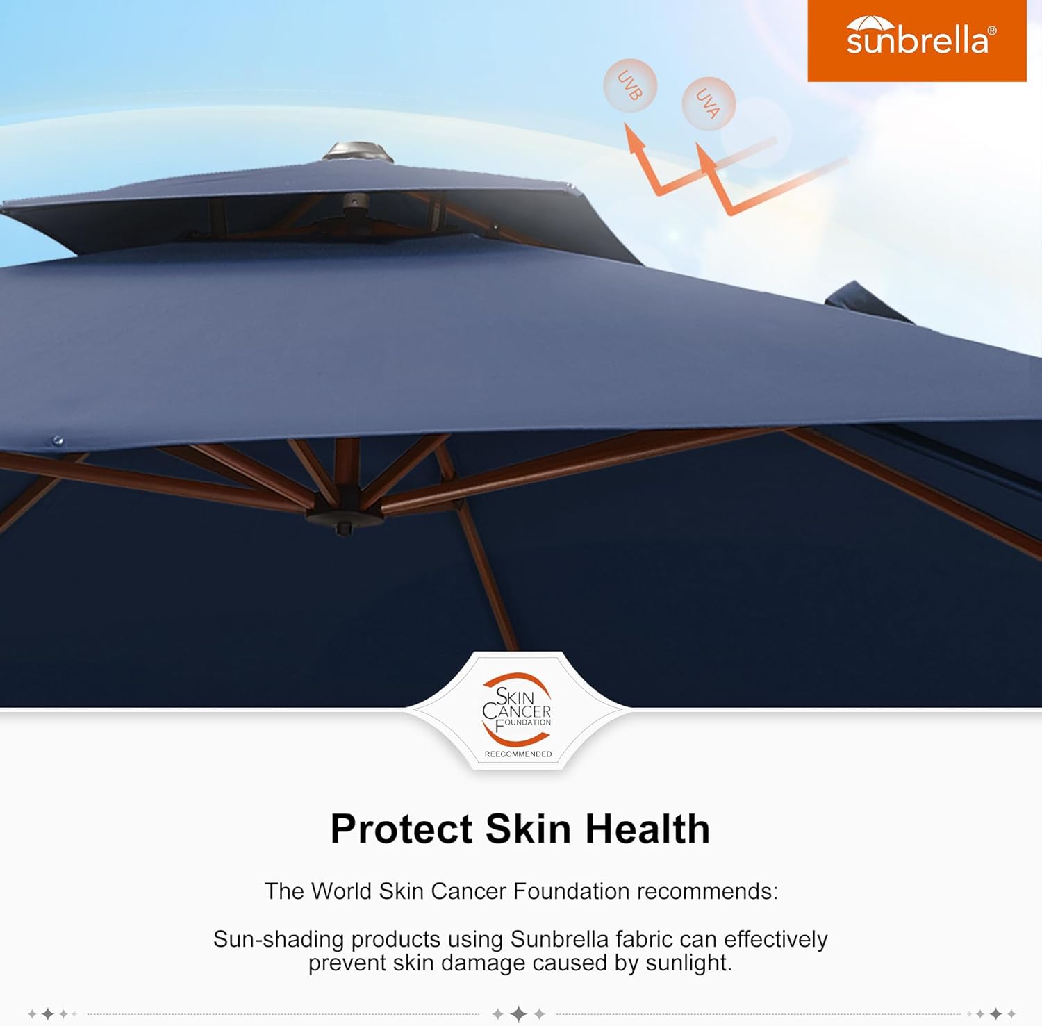 PURPLE LEAF 12' X 12' Double Top Deluxe Square Patio Umbrella - Offset Hanging Cantilever Umbrellas in Spectrum Indigo