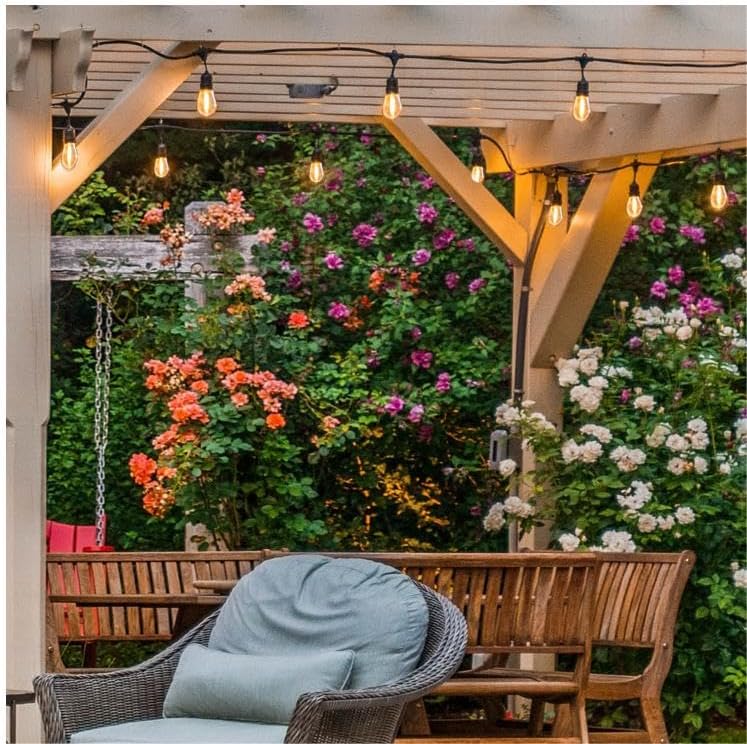 - 【EYE CARE】The string light bulbs is not battery driven. Household power supply AC/120V.S14 string light bulb is made of high-quality transparent plastic, with low heating, no hot hands, no mercury, no ultraviolet and infrared, no glare and no flicker. Designed to provide lower and dim glows. 2200k warm white light makes eyes relaxed, comfortable and relaxed.