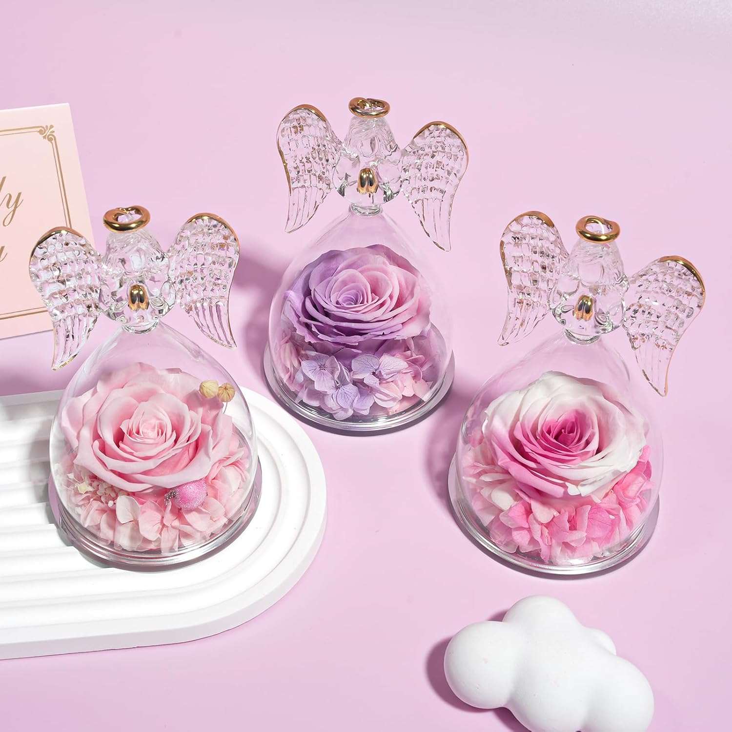 - Our angel figure forever real rose is made with unique preservation process, which can last 3-5 year, you just need to put the angel preserved flowers rose gift in a cool place, no need watering and sunlight.