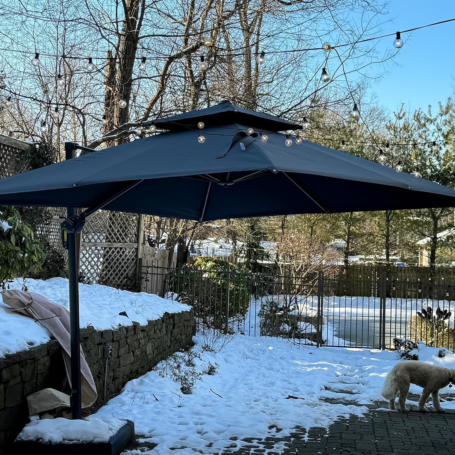 - ROTATION & TILTING: This cantilever umbrella can be rotated 360 degrees easily, in addition, the 6-level adjustable tilt operation system also makes tilting the deck umbrella effortless