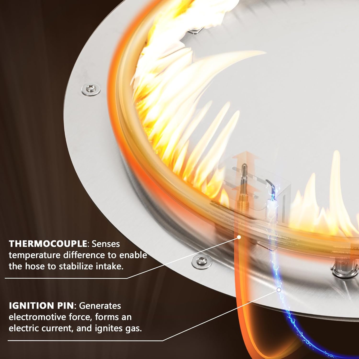 - 🔥【Unique Fireplace】: It's like having a fireplace wherever you want it! The low profile of this elegant fire table just beckons you to gather round it and tell stories. Clean burning propane flame provides soothing warmth with electronic ignition, safety valve for easy start, gentle lighting and a centerpiece for many outdoor evenings worth remembering.