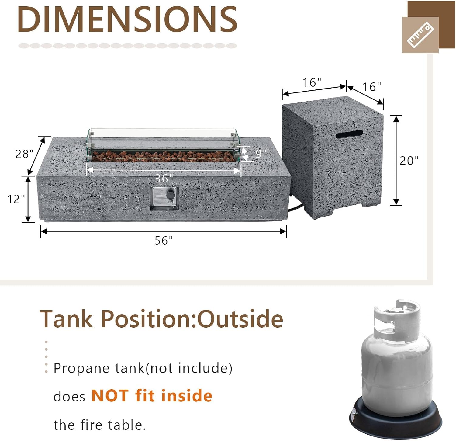 - 🔥【Spacial Economy】: Large enough coffee table surface to set your coffee or nightcap. The entire piece can easily be picked up from the side handles by two people. It fits a 20lb propane tank which should be put outside the fire table.