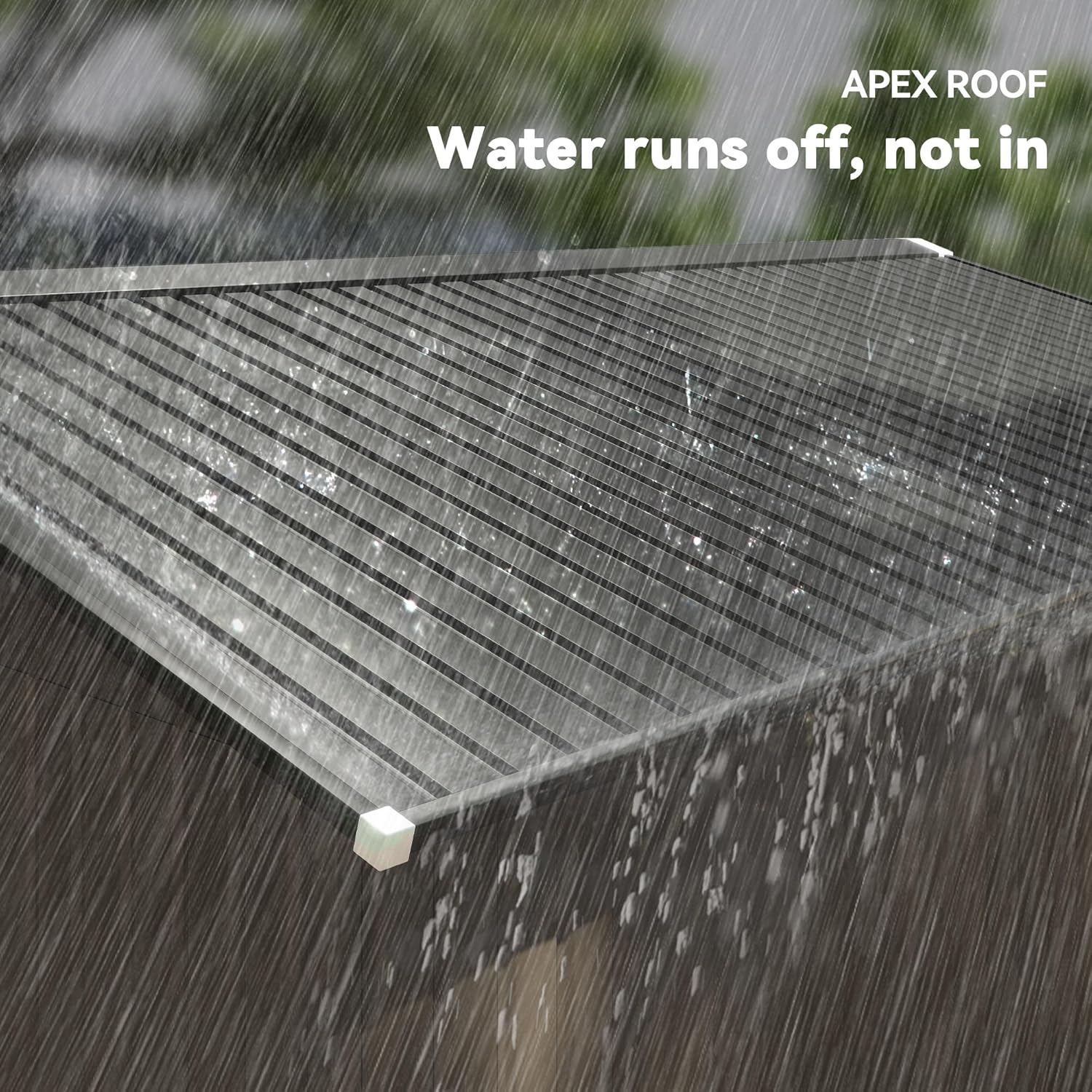 - Sloped Roof Shed: A sloped and striped roof keeps our backyard garden shed from holding on to too much weight during rainfall, preventing possible damage and keeping it intact during all seasons.
