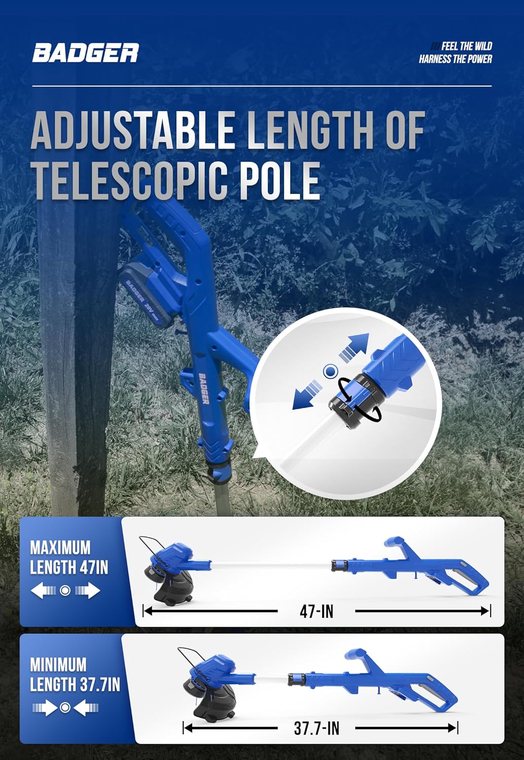 - LENGTH ADJUSTMENT: The trimmer pole shaft extends 37.7 inch up to 47 inch, It can meet the needs of different heights users.