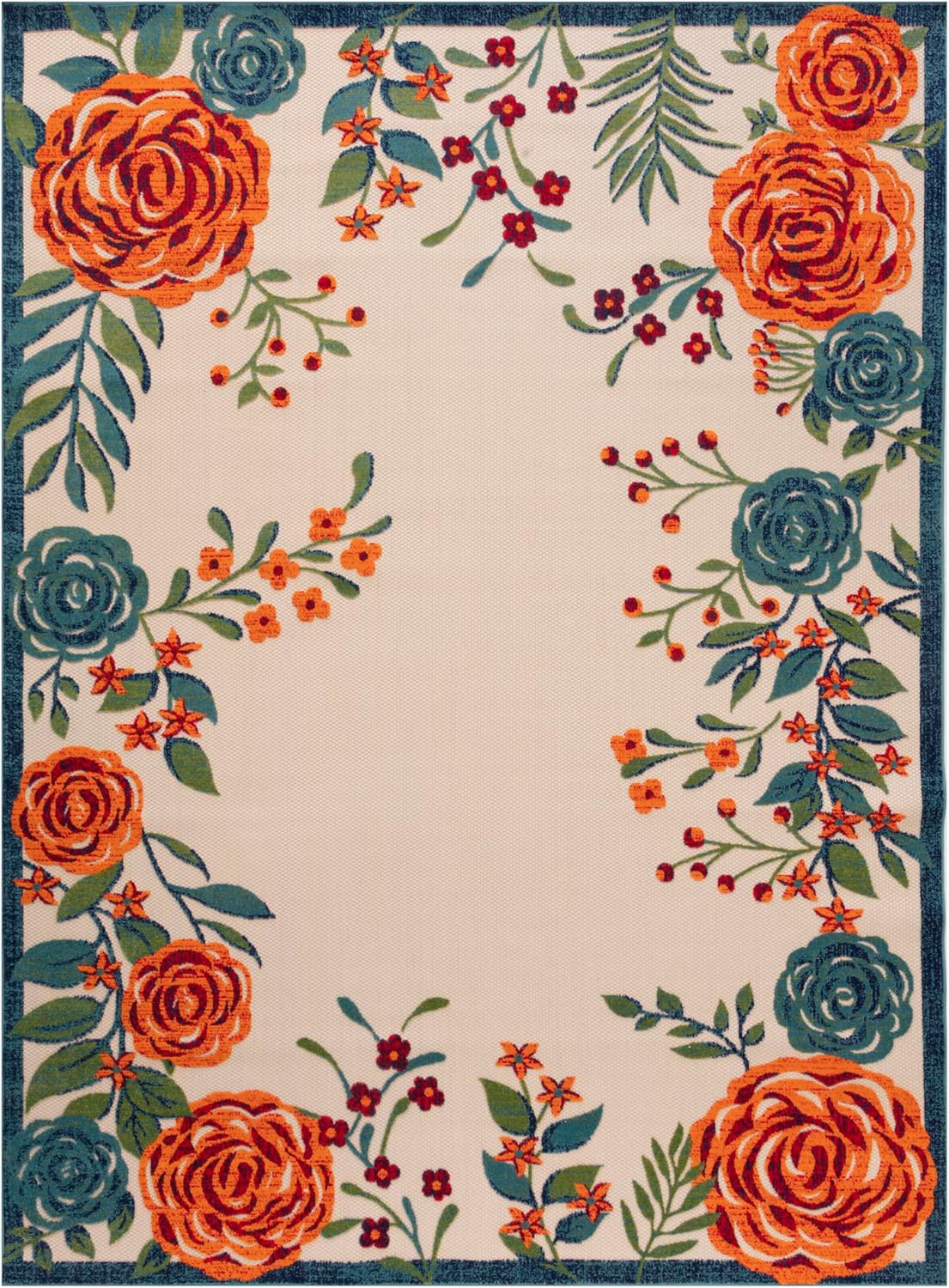 Nourison Home Aloha Indoor/Outdoor Ivory Multicolor 12' x 15' Area Rug, Easy-Cleaning, Non Shedding, Bed Room, Living Room, Dining Room, Backyard, Deck, Patio (12x15)