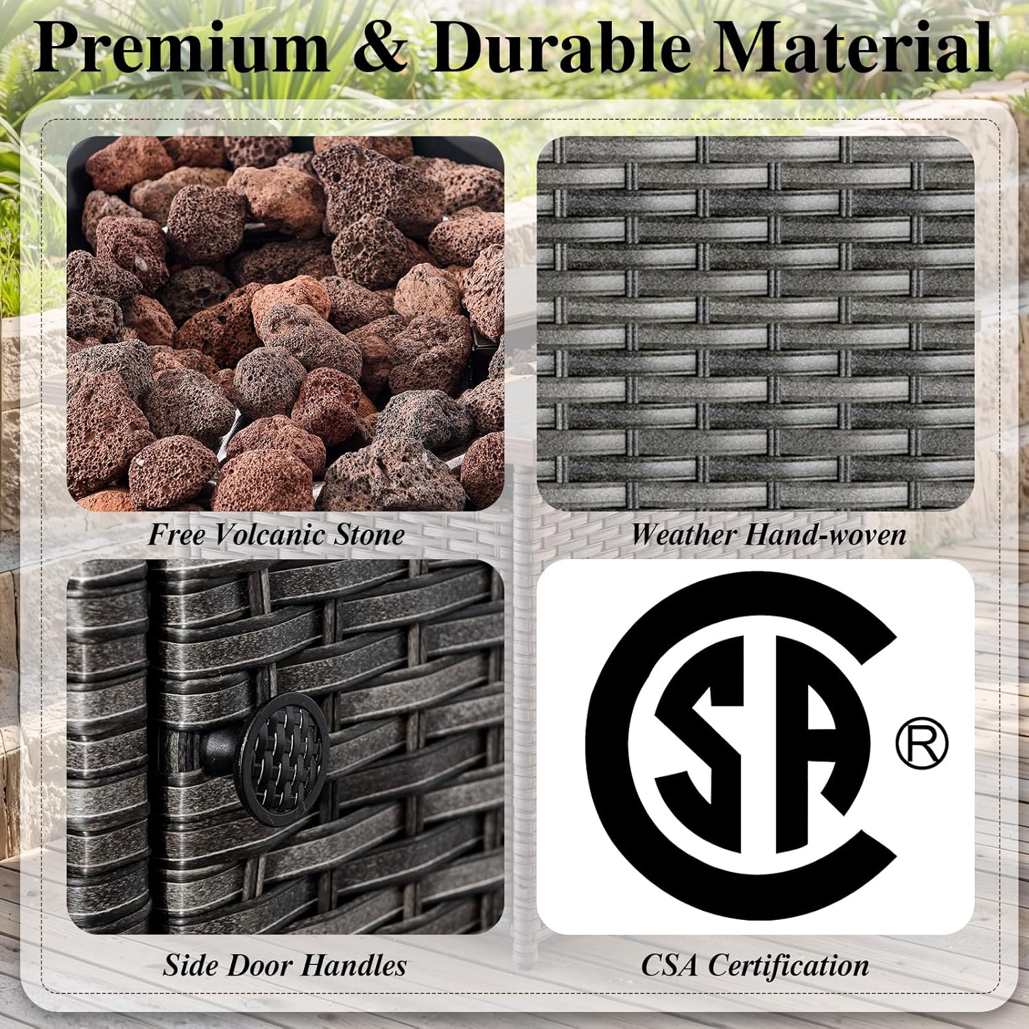 - 【2 IN 1 Fire Pit Table】The gas fire pit table has a heat output of 50,000 BTUs and is equipped with an integrated electronic ignition,It is CSA certified and undergo rigorous inspection and testing before leaving the factory to ensure reliability and safety,It can be used as a sophisticated dinning table with the lid.