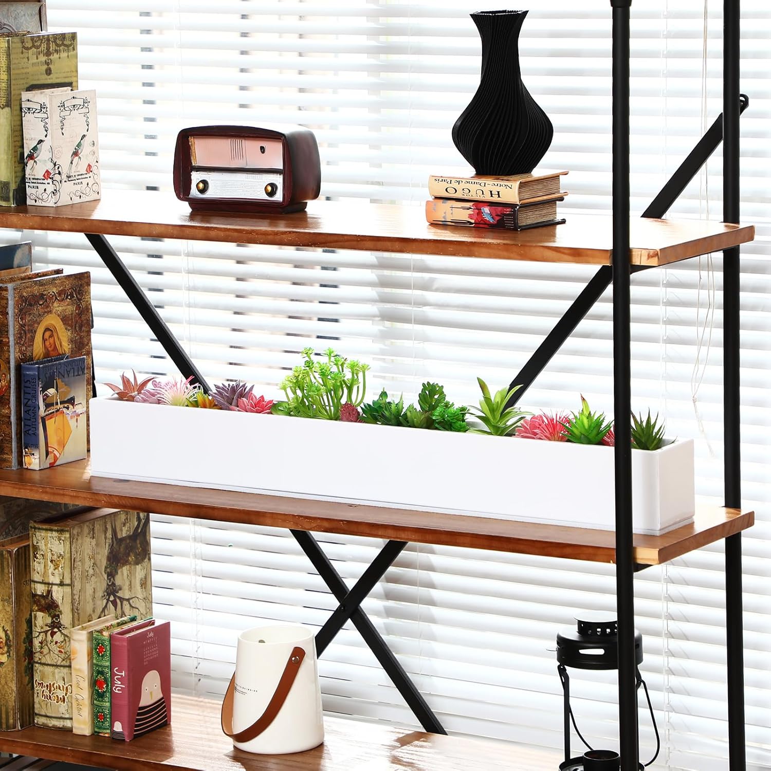 - Versatility: this rectangle plant pot can be applied as a large succulent planter indoors or as a pretty centerpiece on your table; Can be placed on the kitchen, balcony, bathroom windowsill, living room under the TV; It is a narrow flower box, can be easily placed on a bookshelf or table; You can grow cacti, succulents, flowers and other small houseplants, this long rectangular pot can also be applied to hold candles or other flower arrangements, good for your indoor or outdoor design needs