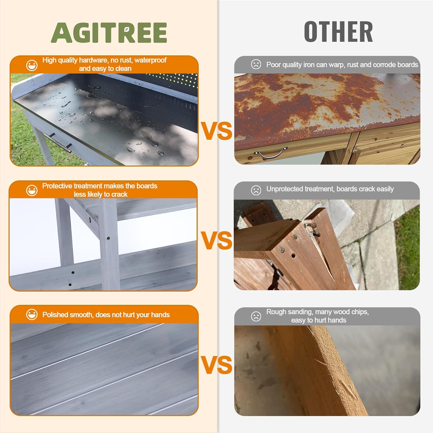 - 【Easy Assemble】:This potting bench is really an easy piece to assemble,features pre-drilled parts with a detailed manual, clear illustrations, and easy-to-understand instructions. And each part has a corresponding number to help you clearly understand each part and assemble it easily,A garden workstation table meets your different usage needs. You can use it as an indoor or outdoor bonsai table, or storage cabinetA great and practical present for gardener, friends, and family.
