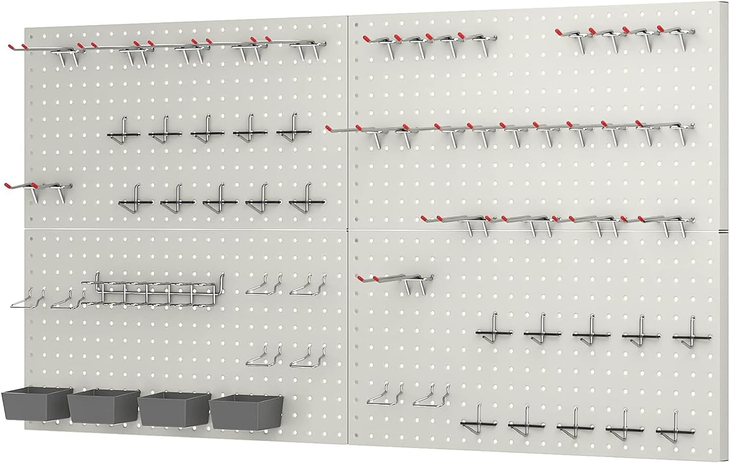 48x24 inch Gray Metal Pegboard Kit for Wall Organization with Hooks, Pegboard Bins, and Utility Tools Storage Board, Efficient Tool Organizer Peg Board