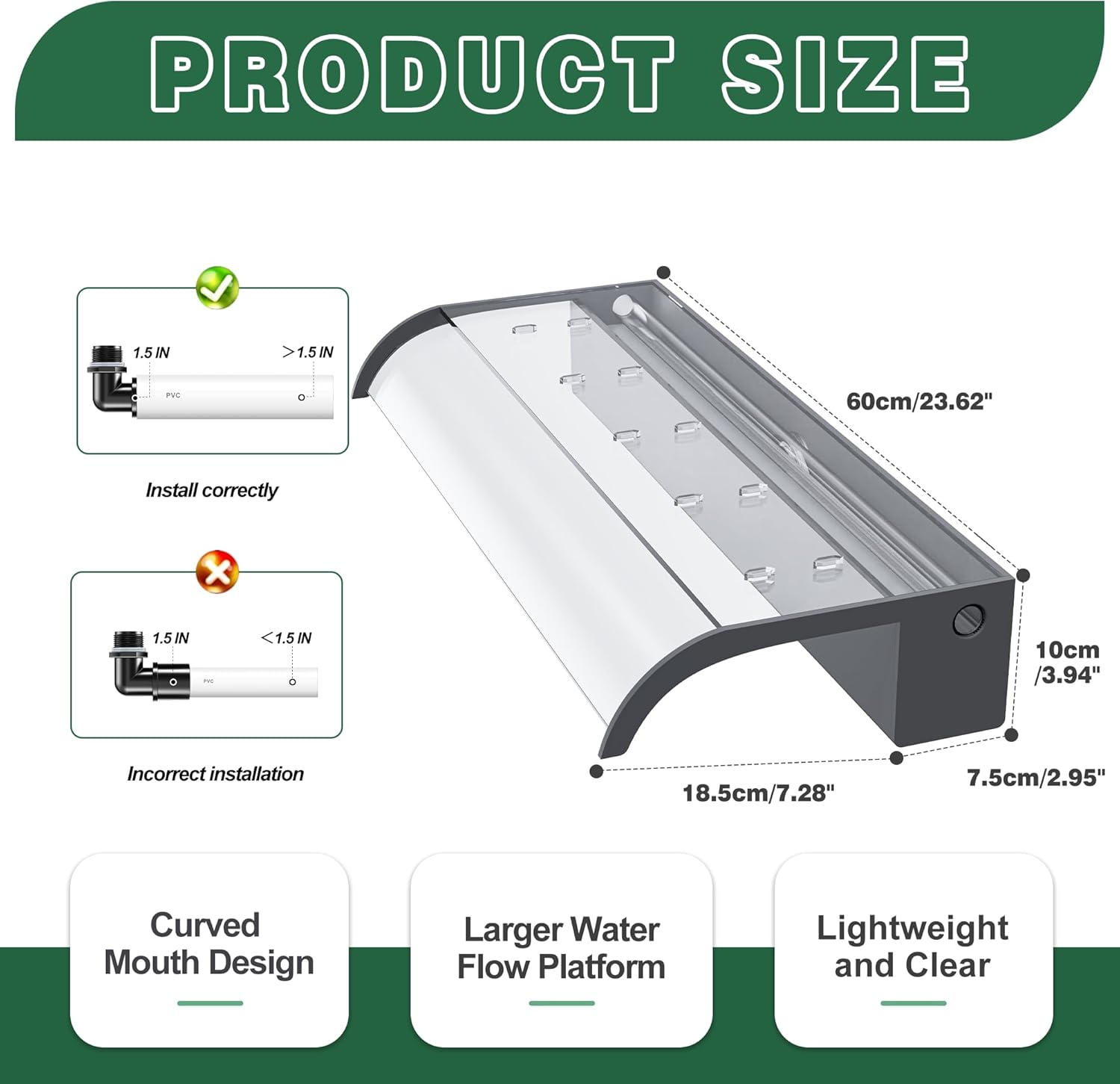 Waterfall Spillway, Clear Acrylic Pool Fountain w/Top Open Lip & Pipe Connector Kits for Outdoor/Indoor Decorative, 23.6'' Pool Water Feature for Garden Patio, Backyard Koi Pond Decor