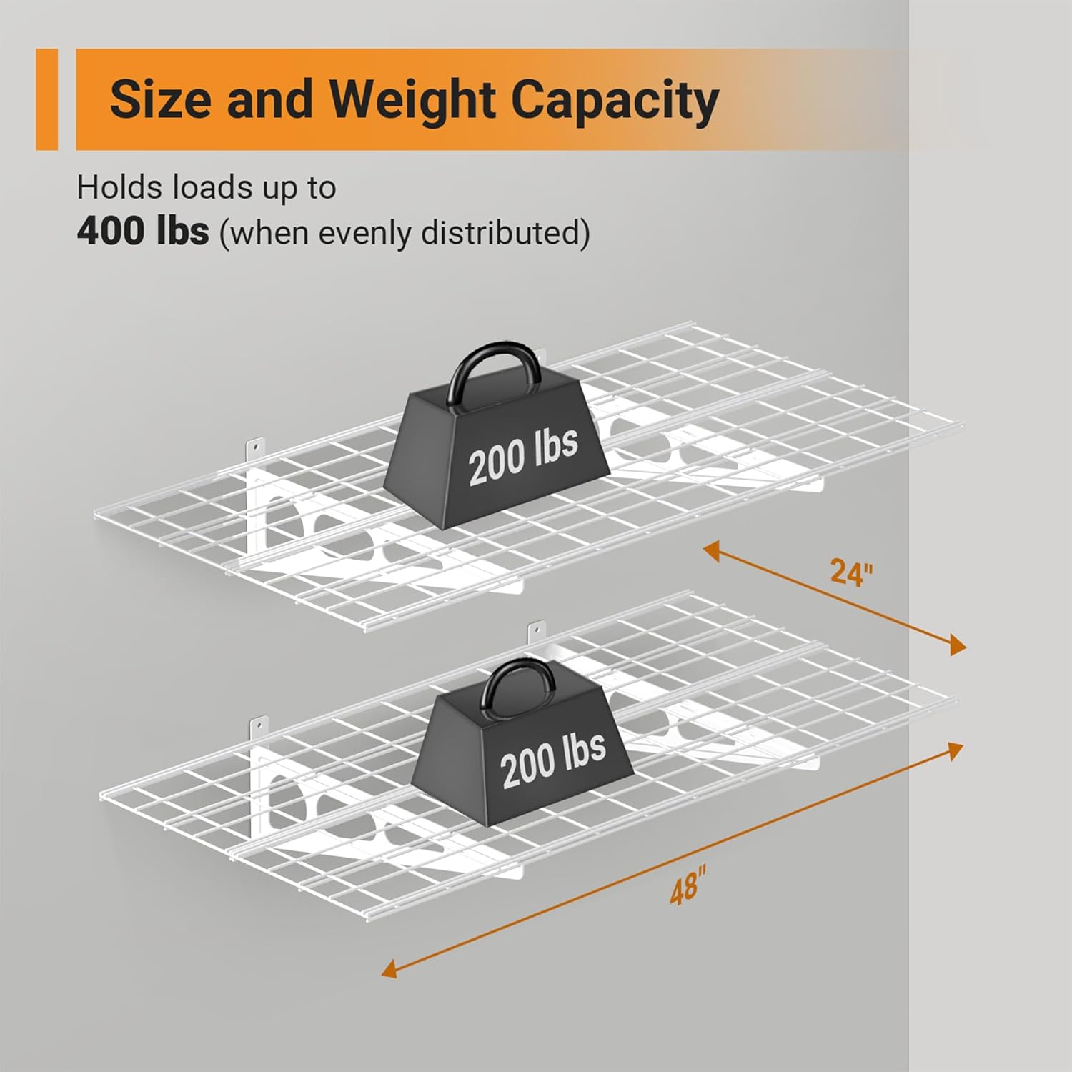 - Multi-functional Garage Wall Shelving: Made of durable, heavy-duty cold-rolled steel, this 2x4 ft garage shelf offers plenty of storage space for your garage, small pantry, or kitchen.