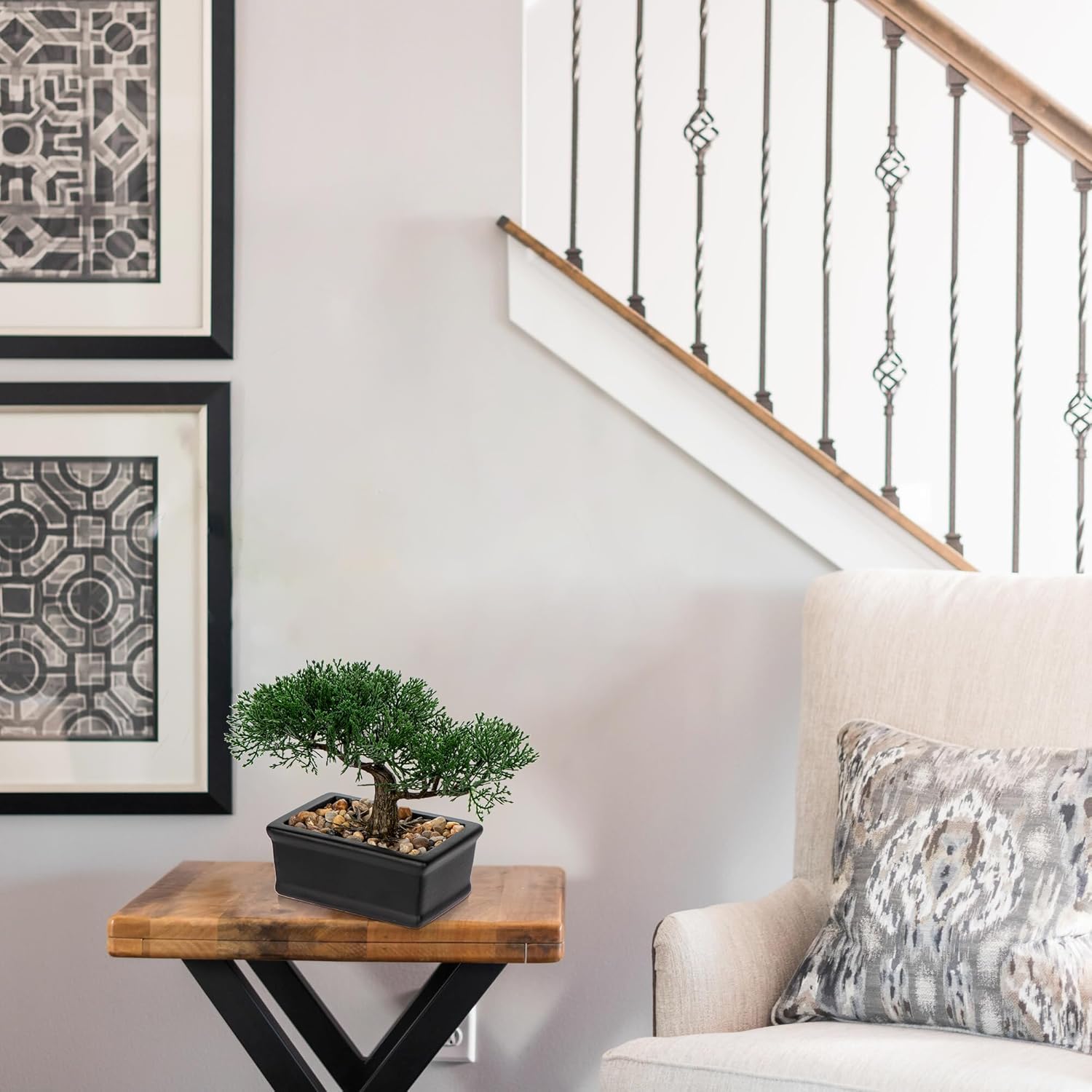 - EVERGREE - A real bonzie tree takes years to fully grown. This realistic small artificial plants never needs to be watered, trimmed or taken out to the sun, gives a touch zen and decor in any space without the work. This potted plants artificial decor will bring harmony and balance to your dรฉcor style.