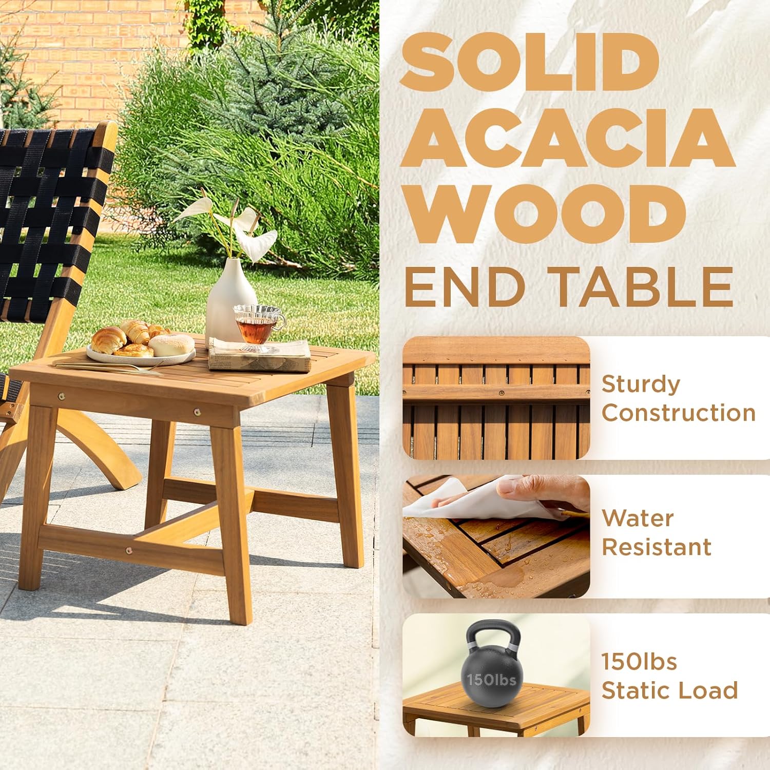 - 『Responsibly Sourced Acacia Wood Bistro Set』: Embrace style and sustainability in your outdoor space with our FSC-certified acacia wood patio bistro set. Under license C137086, this elegant outdoor bistro set brings both charm and environmental consciousness to your outdoor gatherings.