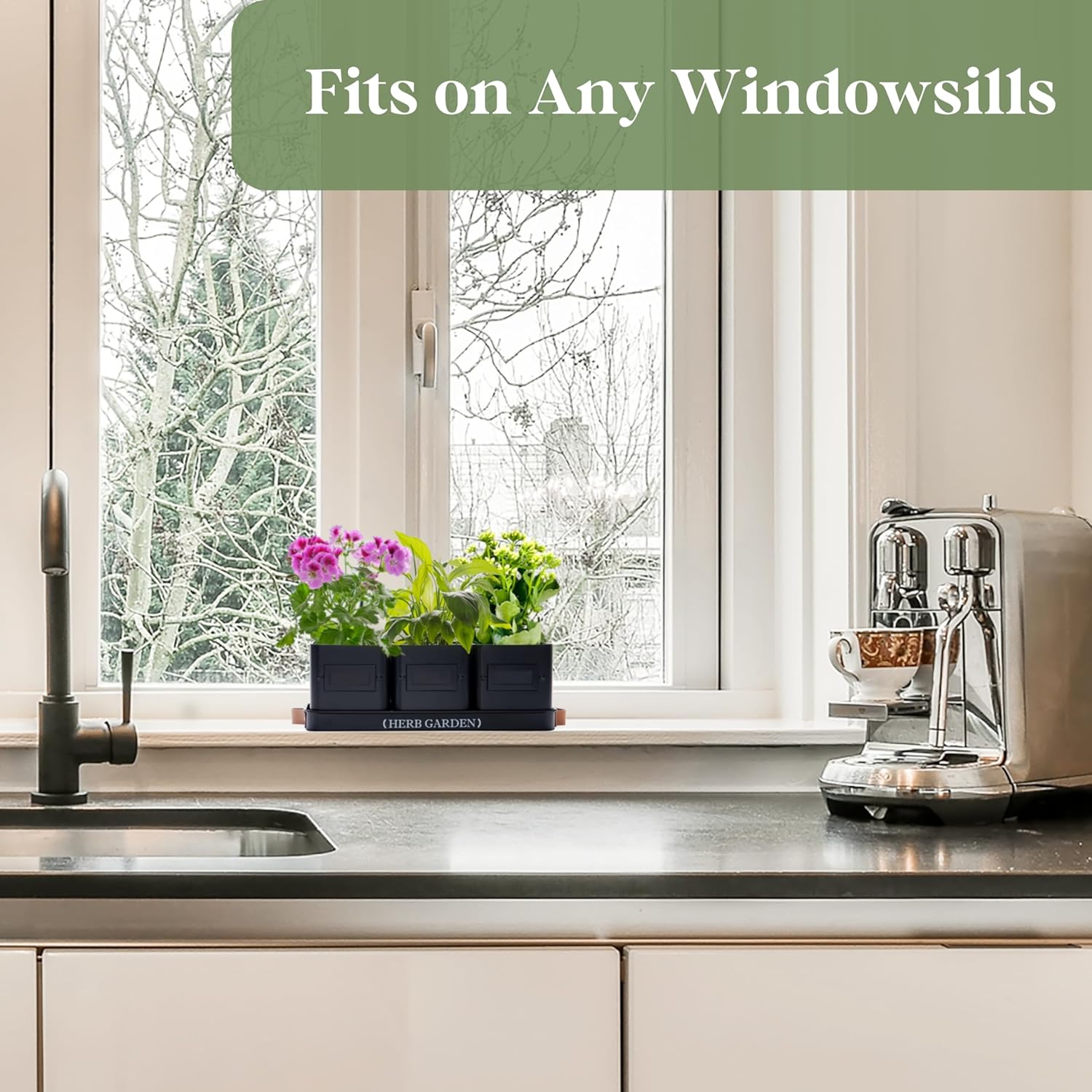 PERFNIQUE Indoor Herb Garden, Herb Planter Set with Tray, Farmhouse Indoor Plant Pots, Windowsill Herb Garden with Drainage(Planter only) for Indoor/Outdoor, Window Pots(Matte Black)