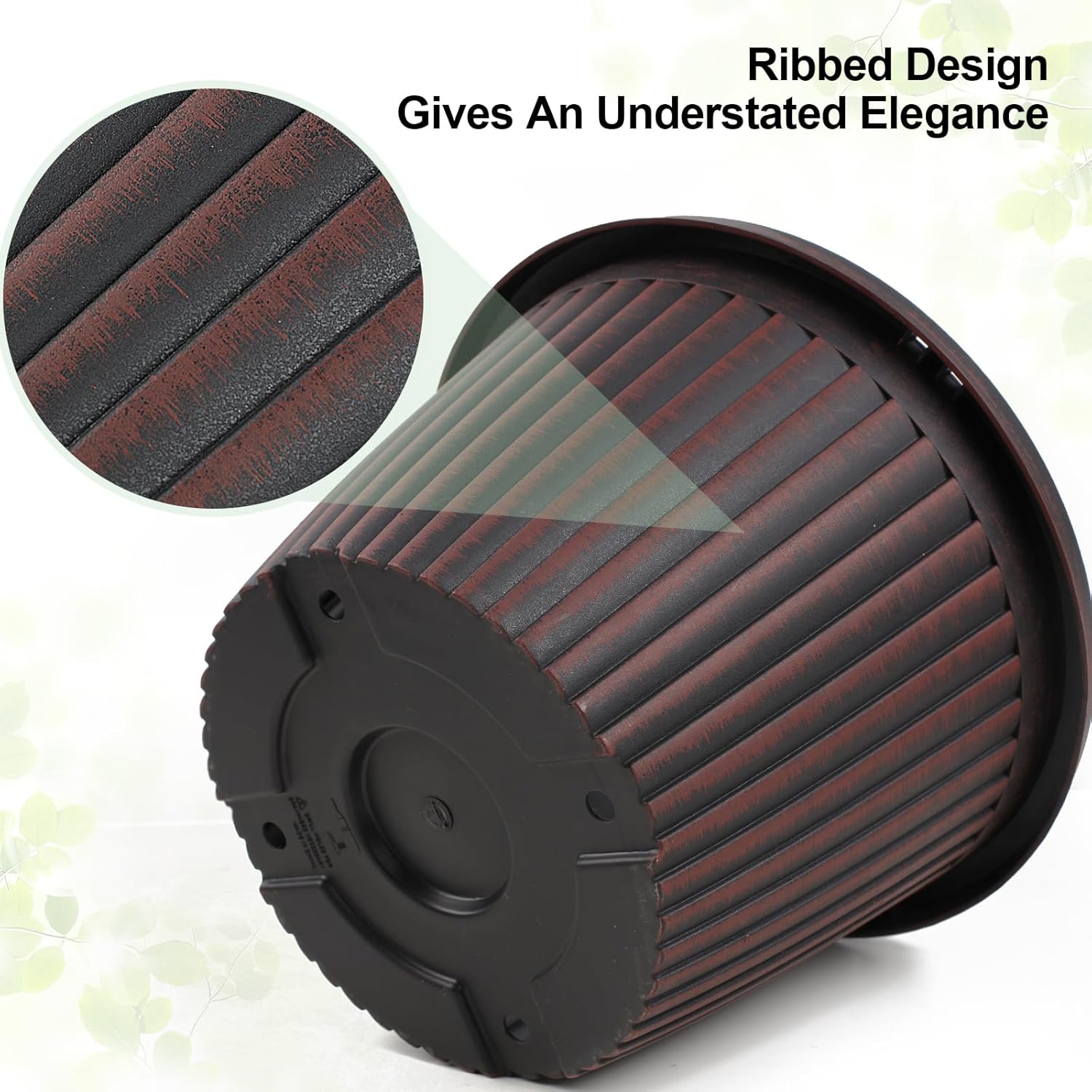 - 【MODERN STYLE PLANTERS】 Indoor planters with saucers provide a unique,nice style in ribbed design which gives an understated elegance that will enhance the beauty of your plant. These 12 inch plant pots are available in red-brown &blue-green & gold finished with a black antique stain. Plastic flower pots would be a beautiful addition to anyone’s deck or sunroom or house!