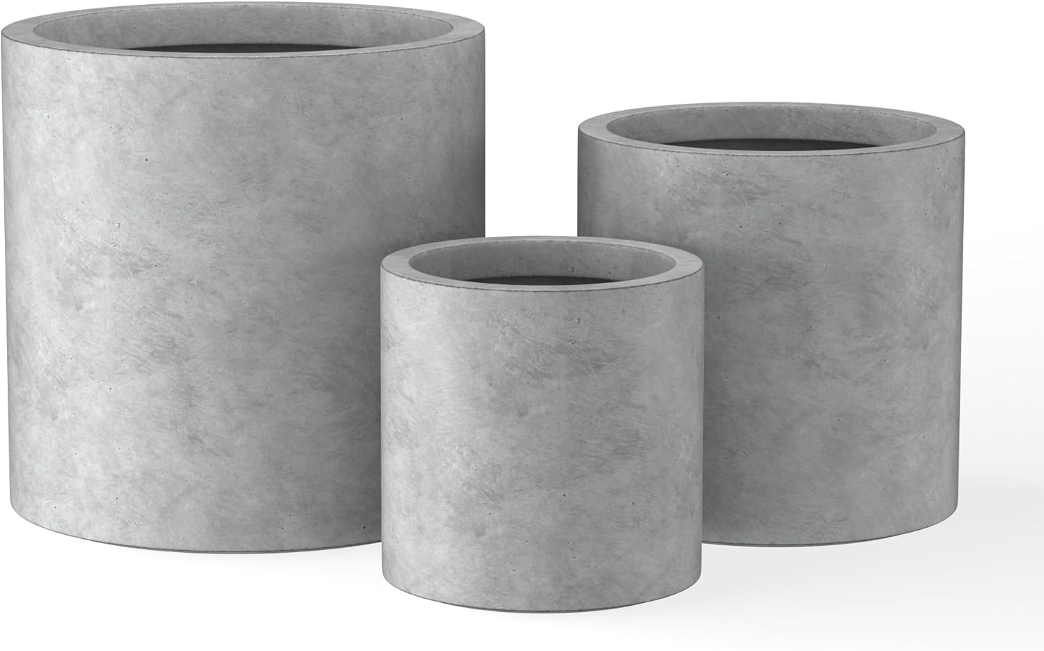 Kante 9.8",12.6",15.7" Dia Round Concrete Planter Set of 3, Modern Style Large Cylindrical Plant Pot with Drainage Hole and Rubber Plug for Indoor Outdoor Patio, Natural Concrete
