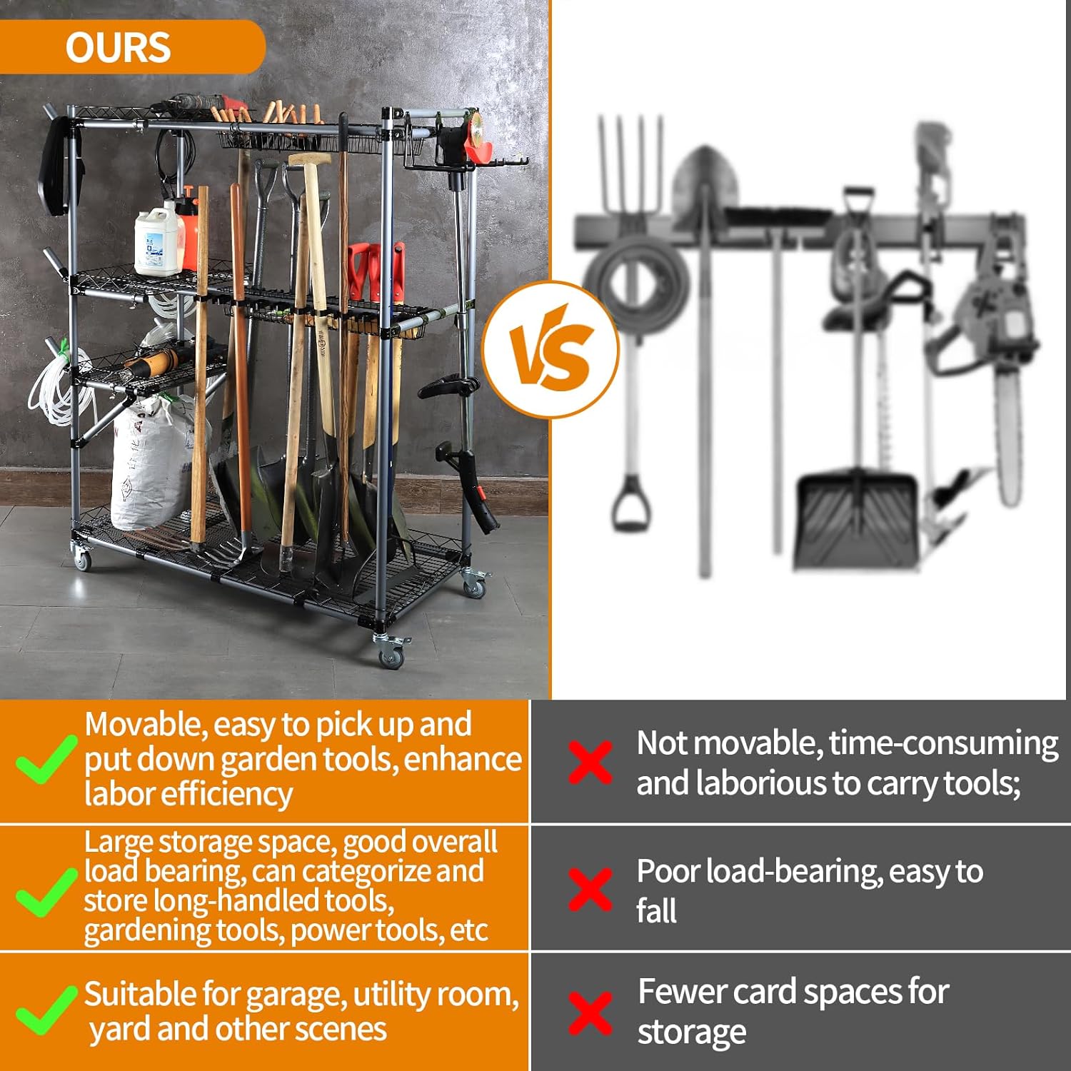 - 1、【Powerful Storage Capacity】 Extra-large space for organizing all your garden tools, keeping your tool shed, garage, neat, and orderly.